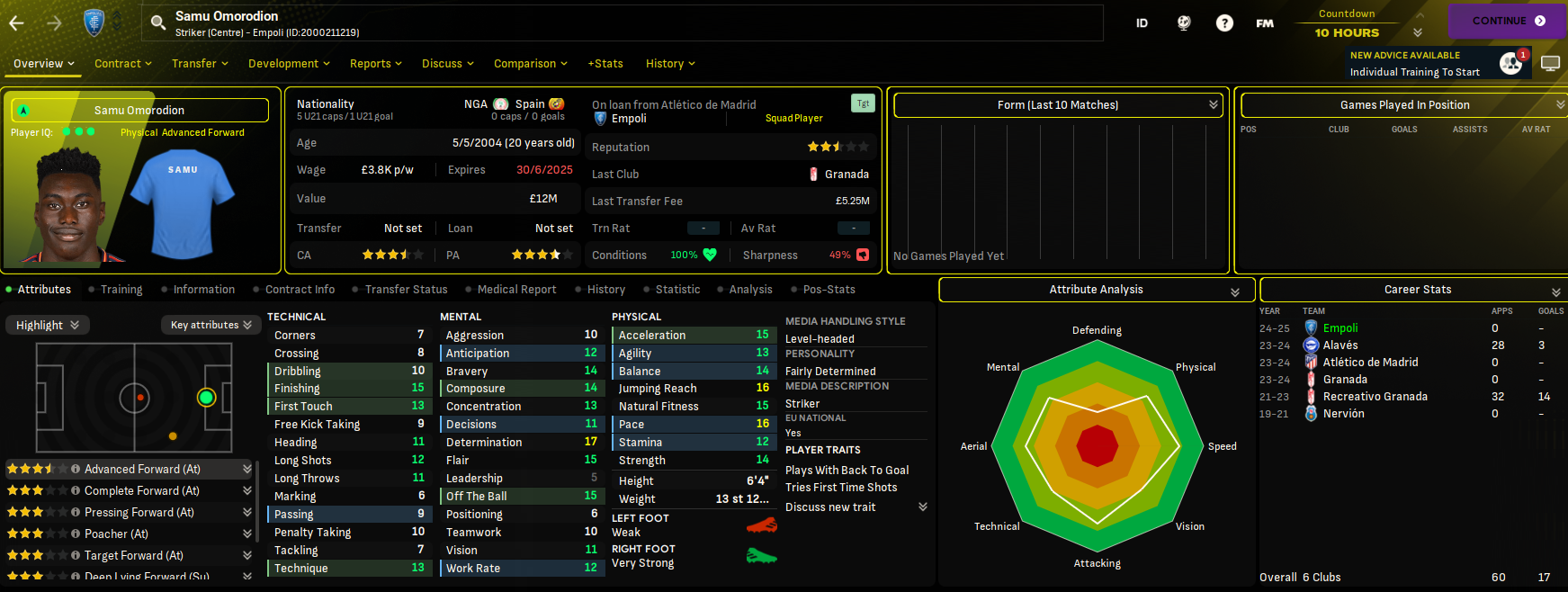 I also loaned in Samu Omorodion from Atlético and Reinier from Real Madrid and signed my first newgen of the save in promising centre-back Francisco Javier Álvarez for £600k from Valencia.