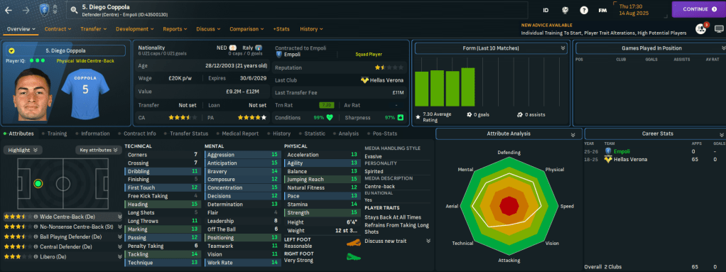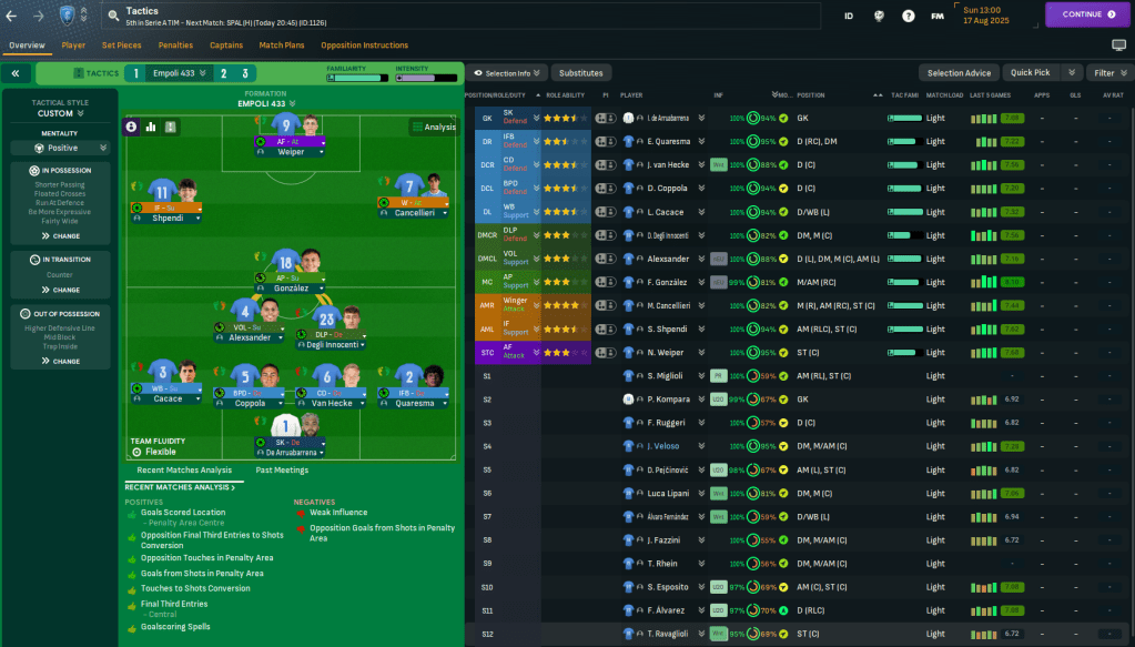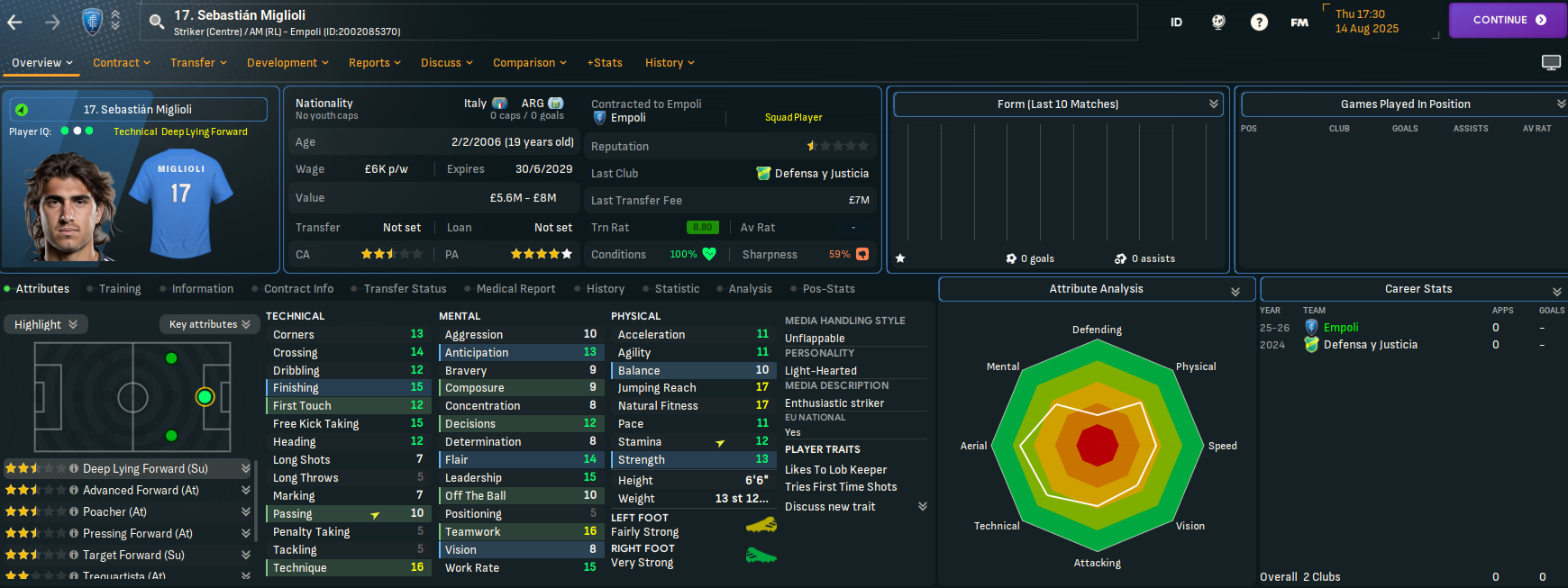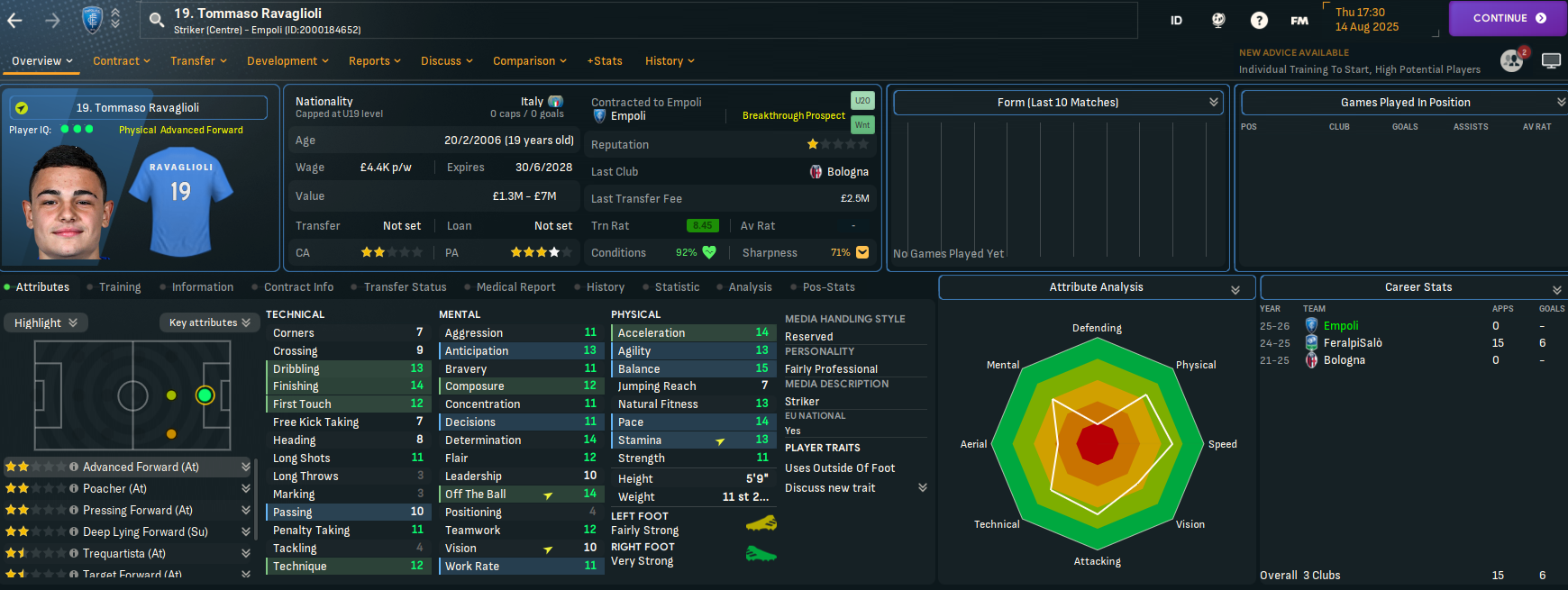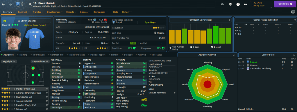 Empoli FC brushed off the loss of their talismanic striker to work their way into the top half of Serie A, securing a 9th-place finish in 2024/25. That success saw the board get all big-headed and expect a mid-table finish in our third campaign, so the pressure was on to strengthen the squad using the existing cash from the Tommaso Baldanzi sale.