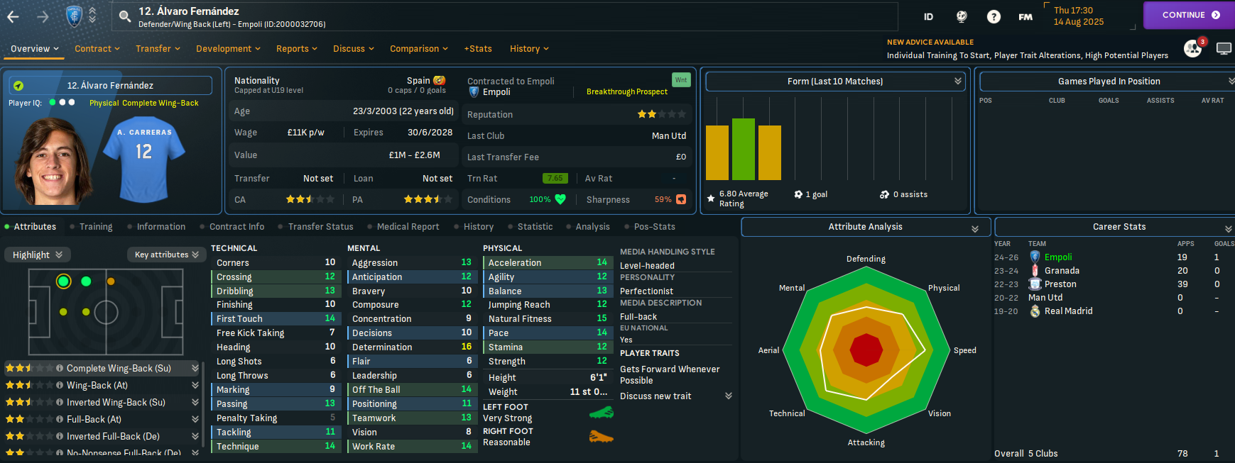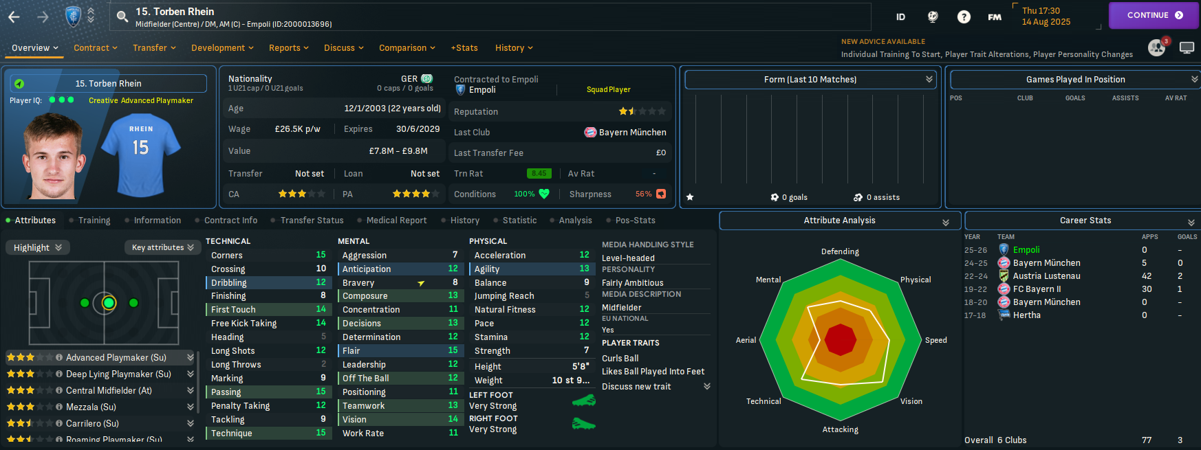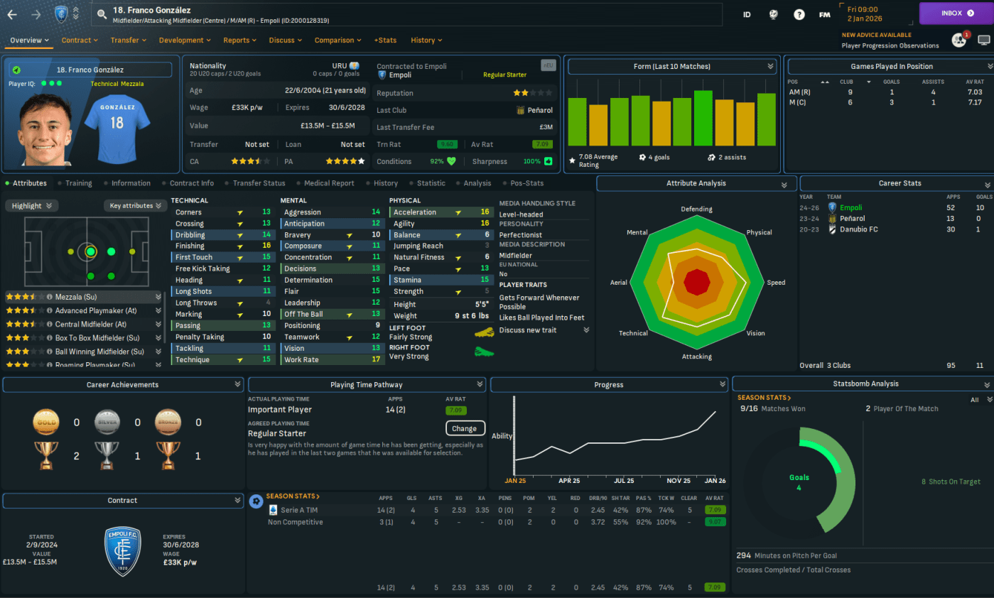Empoli FC brushed off the loss of their talismanic striker to work their way into the top half of Serie A, securing a 9th-place finish in 2024/25. That success saw the board get all big-headed and expect a mid-table finish in our third campaign, so the pressure was on to strengthen the squad using the existing cash from the Tommaso Baldanzi sale.