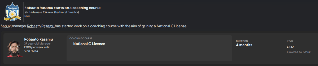 Rasamu had made a positive start to life as a Football Manager, passing the board and supporter objectives to establish Sanuki as a J3 League team with six matches remaining. And even the media were impressed with his start to management, lauding his efforts after his 20th game in charge, which was also the final game of the season. The board was so pleased with his efforts that they agreed to his request to start studying for the National C Licence. So Rasamu made the very first step towards becoming a “proper” manager heading into the off-season.