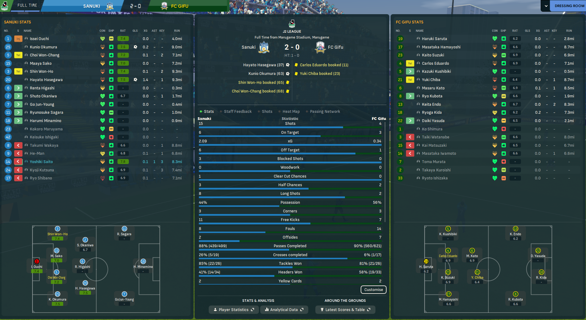 Rasamu was keen to flex his tactical nous and had been busy drawing up new tactics with his coaching team (aka the FM Library Discord server tactics channel). And at home to Gifu, he decided it was time to unleash ChaosBall, which attempted to recreate Fernando Diniz’s ‘positionless’ approach, on Japanese football. He wasn’t expecting it to succeed, especially as none of his team could play as a Segundo Volante, Raumdeuter or False Nine. But, against all the odds, they dominated the game, won 2-0 and gave up fewer shots and less xG than any other game this season.