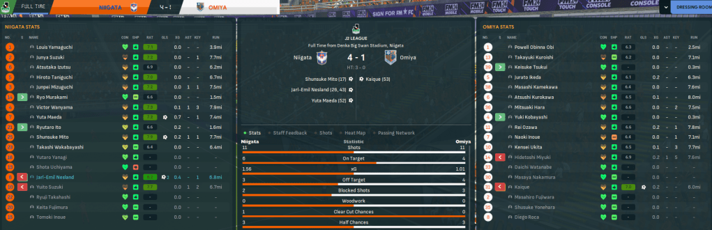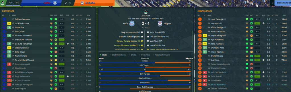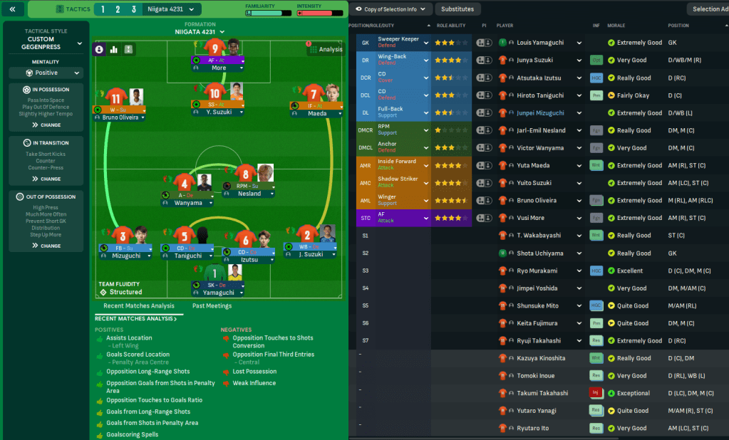 Given his midfield additions, Rasamu initially leaned towards a 4-3-3 with Wanyama at the base but swiftly realised a 4-2-3-1 with Yuito pushed further forward was a better fit. But he was generally excited about getting started in Niigata, given his squad had an average age of just 21.5.