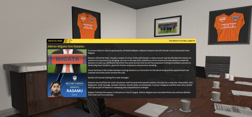 Three seasons of overachievement at Kamatamare Sakuni had hugely increased the stock of fledgling manager Robaato Rasamu. Indeed, his efforts in leading Sakuni to a club-record 7th place in J2 League saw Albirex Niigata come calling and Rasamu joined the second club of his career on 7 December 2025.