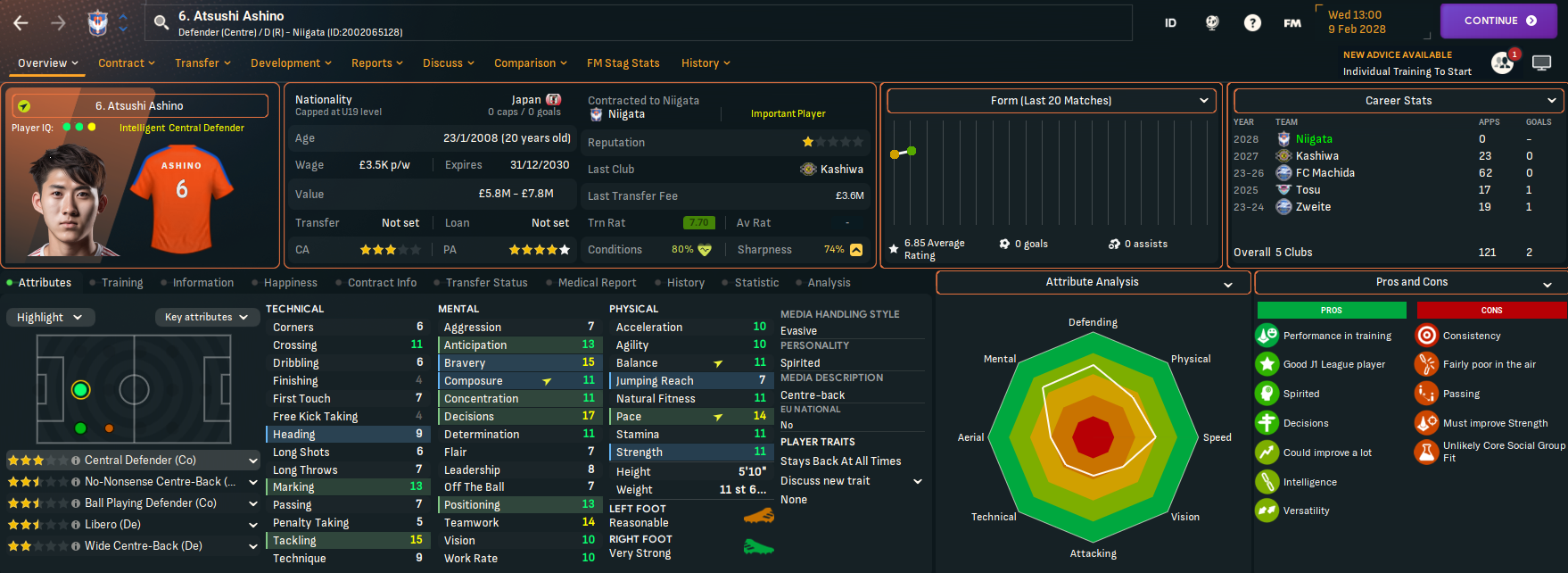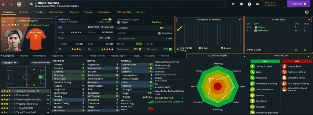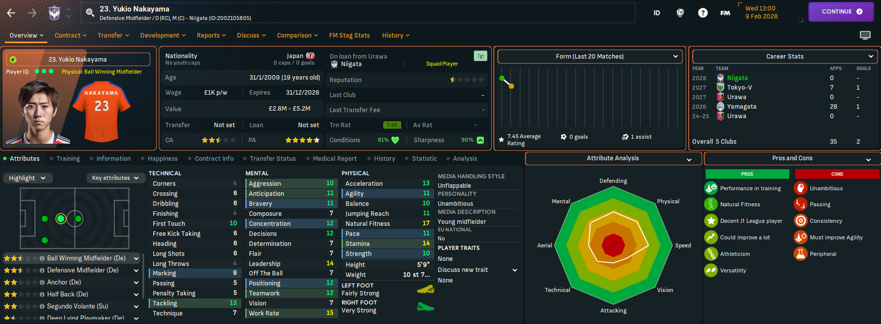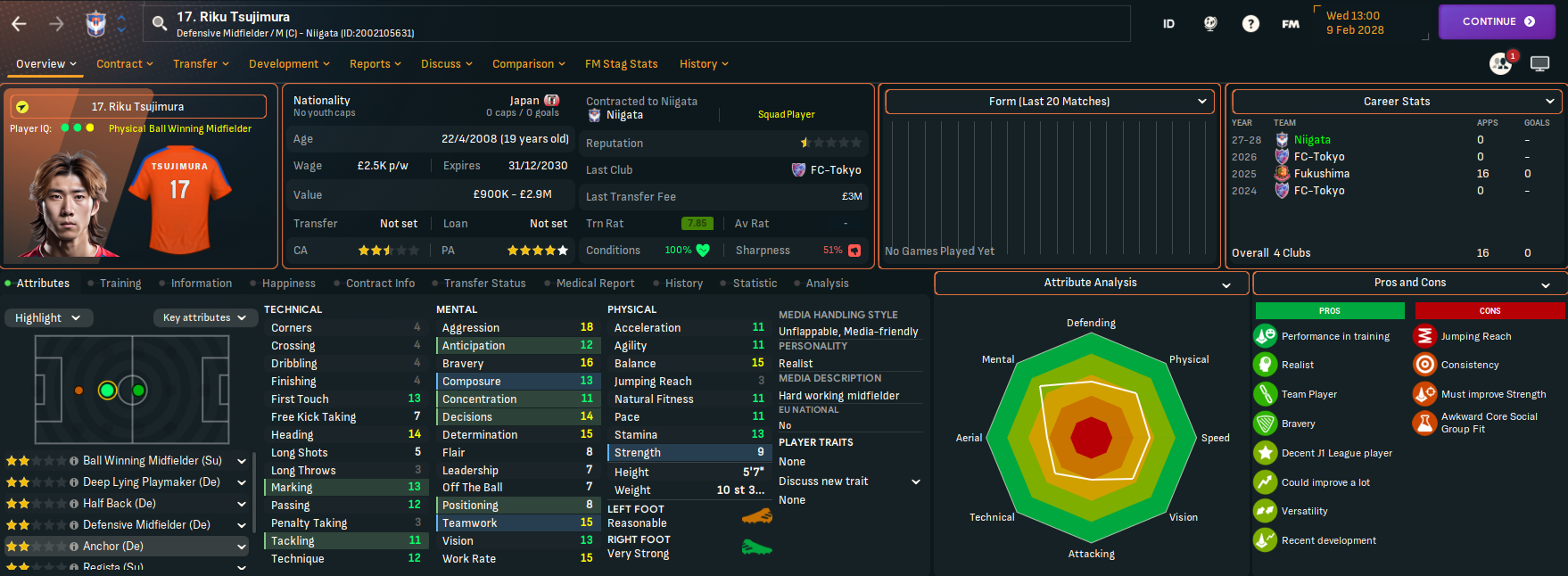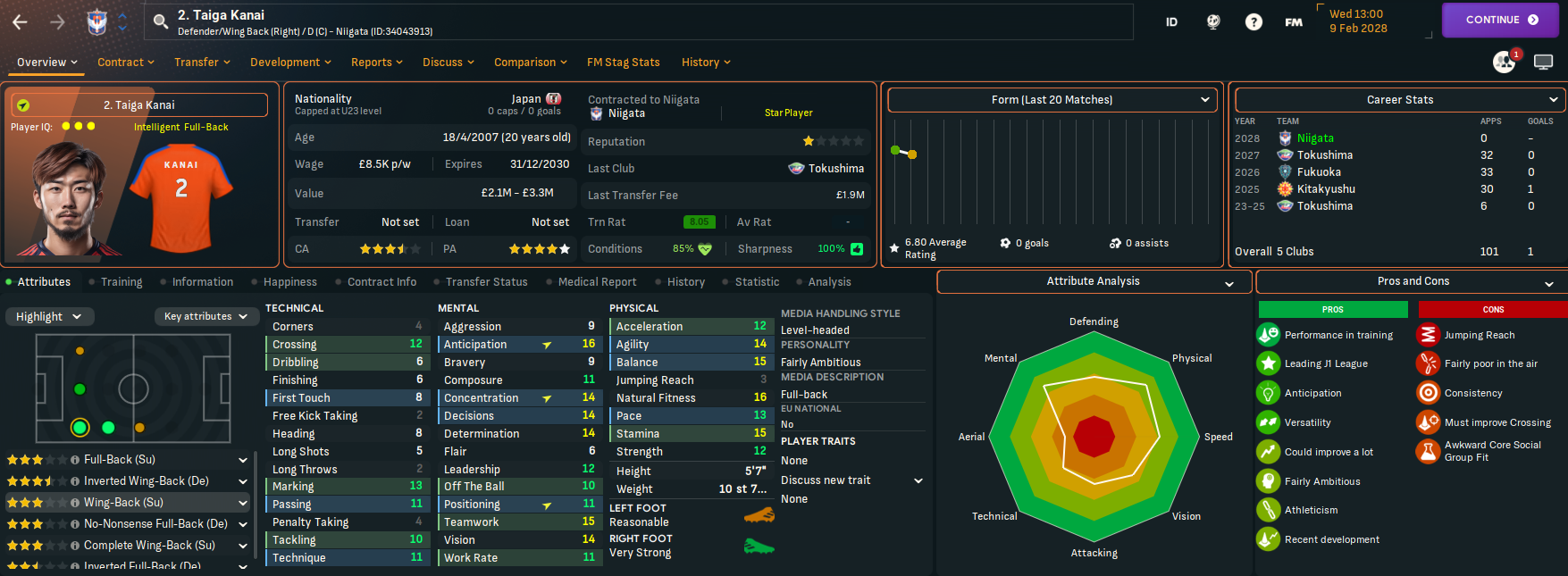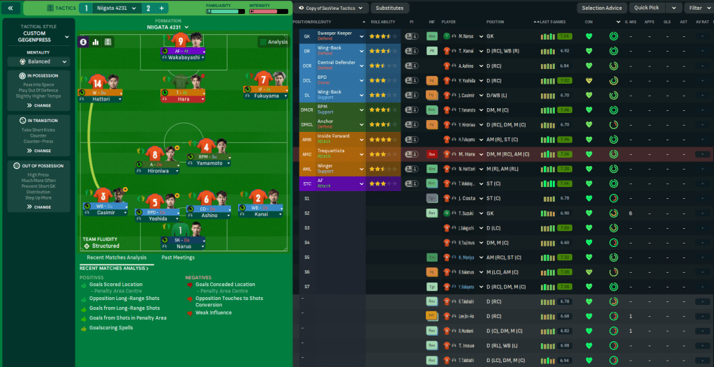With that transfer activity done, Rasamu felt the team remained best suited to his 4-2-3-1 with a few tweaks here and there. New boy Costa is the oldest player at the club aged 22 and the squad has an average age of 19.78. But they had 13 players with 5-star potential and four more with 4.5-star potential (for context, 4 stars is considered a leading J1 League player).