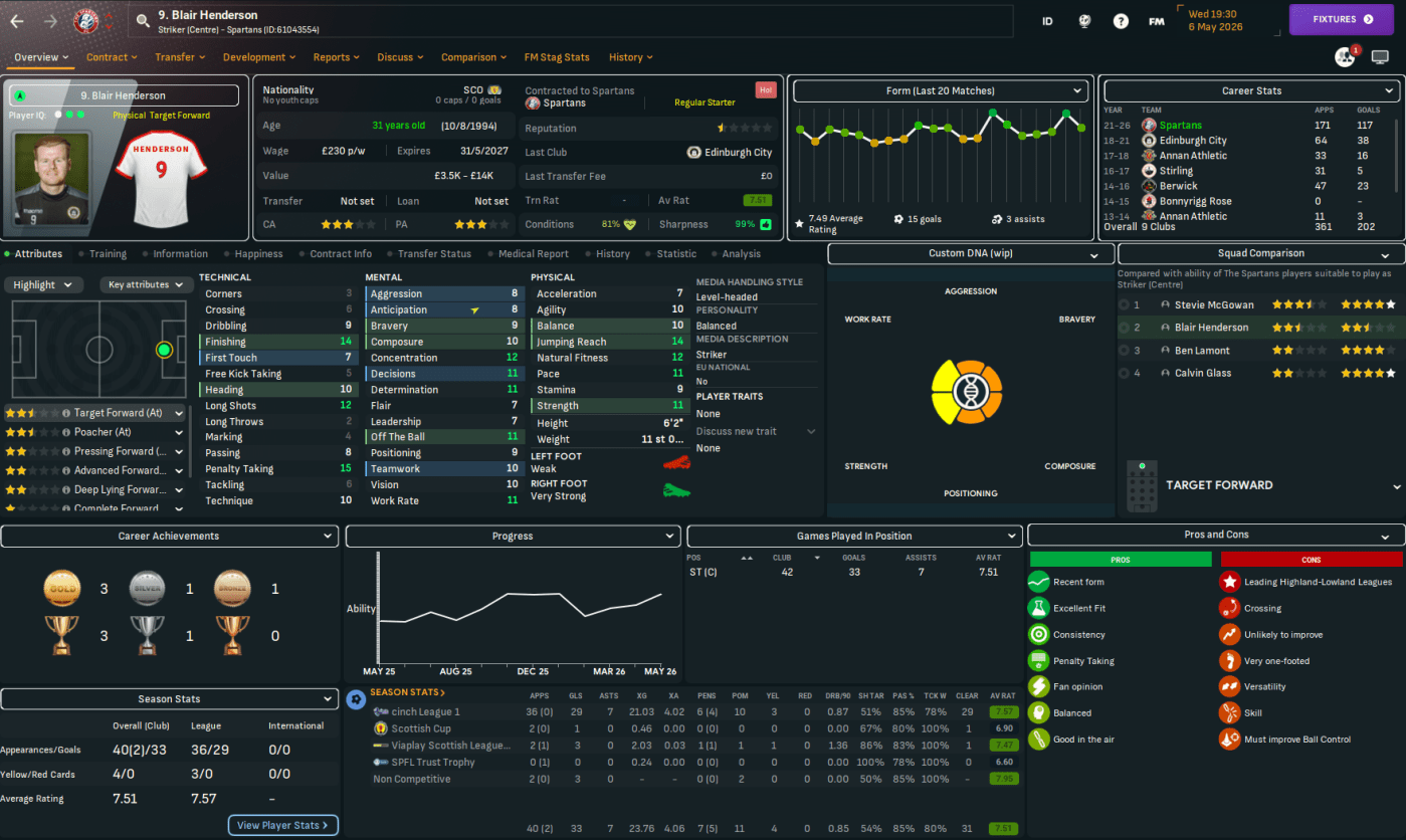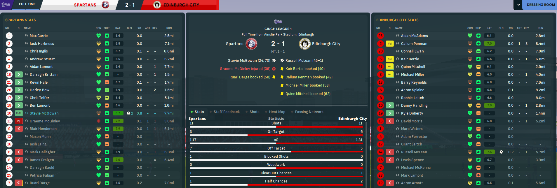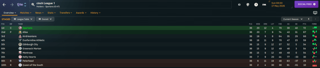 That level of passion was infectious to his impressionable young squad. They drew 4 of the first 6 games, including a 1-1 at relegated Dunfermline, before comprehensive 3-0 and 4-0 victories over Montrose and newly promoted Peterhead. Henderson bagged back-to-back braces to defeat Edinburgh City and Alloa before they came down to earth with a 3-0 loss at Airdrieonians. But an exciting moment saw homegrown striker Stevie McGowan end his 20-game goal drought with a hat-trick in a 4-1 win at Queen of the South. And heading into 2026, Spartans were 4th, trailing the pretty dominant Airdrieonians by 8 points.