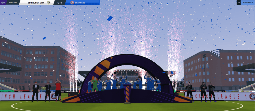 Edinburgh City (5th, away): Going into the final day, barring an absolute catastrophe, Spartans would win the title at the home of their rivals. This time, Leonidas’ speech wasn’t quite as an intense, simply uttering “Go forth men, and make HISTORY,” again gaining the retort of “HA-OOOH!” But they weren’t quite as fired up as they played out a tame 0-0 in the first 45 minutes, as did Airdrieonians who then fell behind on 57 minutes. Leonidas threw on some youngsters, including Kelby Crabbe who crossed for Henderson to score the only goal on 80 minutes.