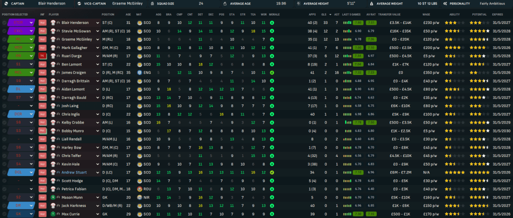 In addition to that, they also had another strong youth intake including 4 players with 5-star potential and 4 more with at least 4-star potential. The class of 2026 was led by attacking midfielder Graham Harvey, winger Crabbe, 6ft 5in centre-back Bobby Munro, goalkeeper Michael Tolley, midfielder Willis Main and striker Regan Stirling.