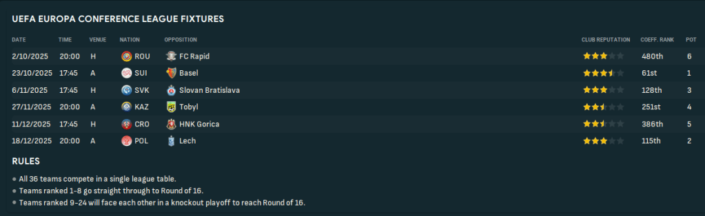 That set up arguably the most difficult tie in FC Santa Claus history against Belgian side Gent. Rudolph got injured in training before the first leg but Lautaro replace him and scored twice alongside Endrick and Vixen goals earning a 4-2 win in Belgium. He then bagged a hat trick at home for an 8-3 aggregate win to send FC Santa Claus into the group stage, where they got an intriguing set of fixtures.