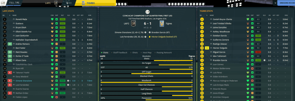The game started quietly but LAFC made the first move as a 16th-minute corner came back to Ordaz, he cut inside and drilled the ball low into the bottom corner. That was their only shot of a tame first half, so Rasamu fired the boys up but didn’t get the reaction he wanted as Pachuca fired a warning shot by hitting the post seven minutes after the break. The match continued to be dreadful and neither side created anything worthy of highlights. So Rasamu dropped the pace, toned down their mentality and, fairly shamefully against his former club, played for a 1-0. And it worked, as LAFC won 1-0 to become Champions of North America!