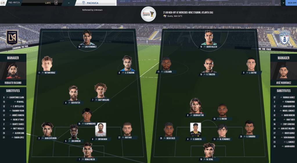 Fans of LAFC and Pachuca descended on Atlanta for a huge clash as Rasamu faced off his against his former club just five months since swapping México for LA. Pachuca named six players Rasamu had never heard of, while he had no injury concerns so lined up: