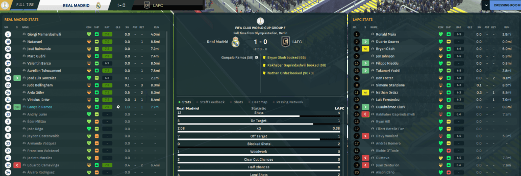 LAFC managed to restrict Madrid to long range potshots and went into half time at 0-0. But Ramos broke through after 58 minutes (just as Rasamu was taking the exhausted Davy Woolard off), nothing else happened and they only lost 1-0 to Real Madrid.