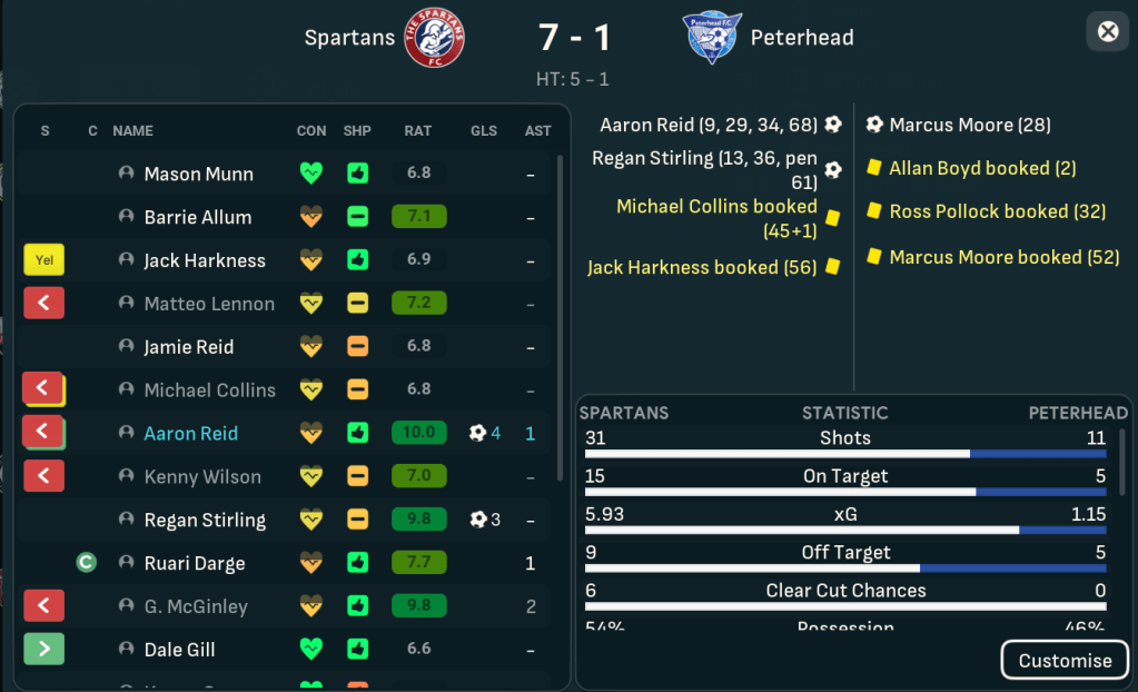 Spartans very much had their front two to thank for their title-winning campaign as Reid and Berra scored 68 goals between them. Reid led the way with 37 followed by Berra (31), Darge (11), McGinley (8) and Stirling and Brandon (5). Stalwart McGinley continues to defy his 2-star rating, leading the way with 17 assists followed by Darge (11), Johnston (9), the midfield duo of Brandon and Hale (8) and left back Ciarán Bow and Berra (7).