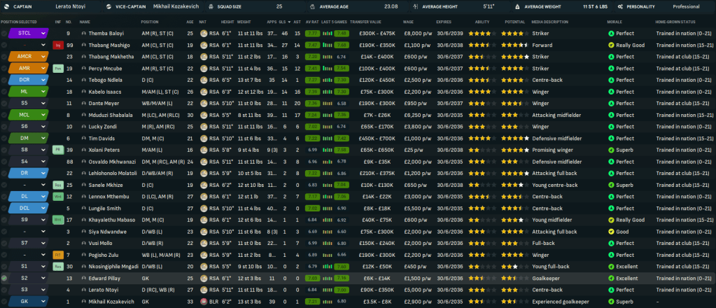 Rasamu’s second year in South Africa had been one for the ages as Chiefs became South African champions for the 11th time and added their first Champions League. The main man behind this success had very much been Baloyi, who scored 46 goals plus 15 assists in 40 games including 14 in 14 in the Champions League. He was ably supported by Mashigo’s 27 goals and 14 assists, Makhetha’s 16 goals, Mncube’s 15 goals and 12 assists, Isaacs’ 14 goals and 16 assists, Meyer’s 11 goals and 20 assists, Shabalala’s 11 goals and 17 assists and centre back Ndlela’s 14 goals.