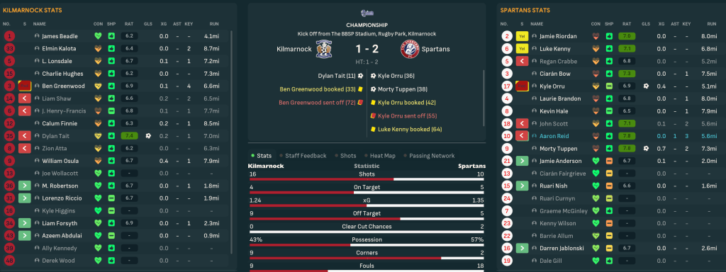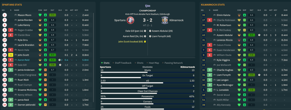 2032 began with a massive game as Spartans travelled to Kilmarnock. And they made a real statement of intent as winger Kyle Orru and Toppen completed a superb turnaround in a pretty feisty clash. They backed that up by dominating Alloa and winning 3-1 to move 6 points clear, but went to new levels as Reid thumped 4 goals in a 6-3 hammering of Queen’s Park, in which Graeme McGinley became Spartans’ all-time record appearances holder as he surpassed Blair Henderson’s 241 league games.