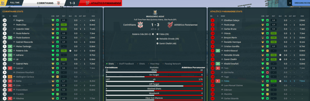 Rasamu’s first game in Brazil was a challenging trip to Corinthians, who were also underperforming in 14th. Their hosts started the better but a free-kick rebounded to Fábio to drill home from 20 yards. That goal gave them confidence and Fábio’s low cross fell to Strada to convert his first goal of the season then Cheikh fired home following great play by left back Brayan Marín just after half time. Corinthians got a late consolation but this was a superb start for Rasamu.
