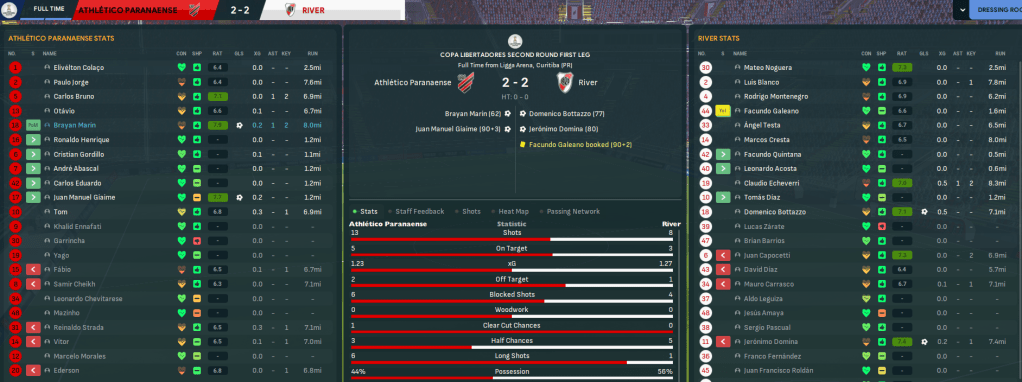 Rasamu was thrown straight into Copa Libertadores as Paranaense took on the mighty River. They looked pretty good in the first half of the home leg and Marín headed home the opener on 62 minutes. Just when they looked to be in control, they gifted River two goals but, to everyone’s surprise, they equalised in injury time through winger Juan Manuel Giaime. Paranaense should have been in front early at Más Monumental as Cheikh missed a sitter and they were made to pay as River swiftly got the opener. They held River until the 80th minute when their midfielder scored a sensational solo goal, but Paranaense were knocked out 4-2 on aggregate.