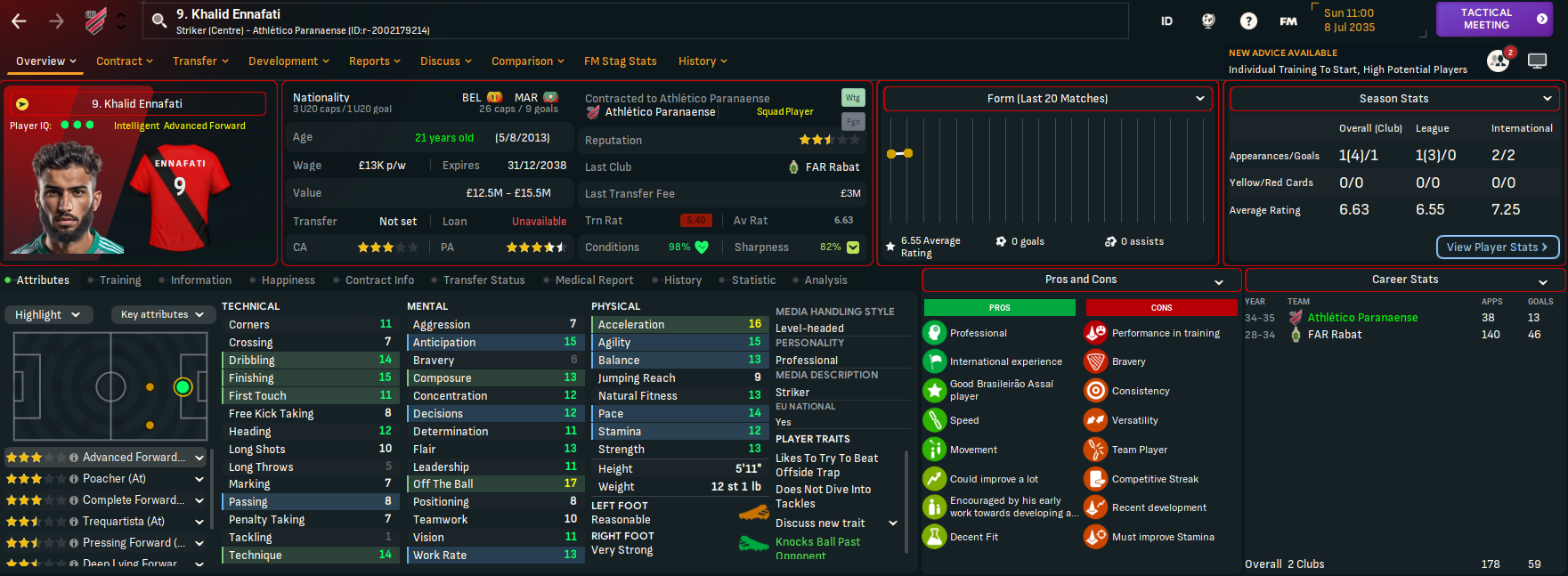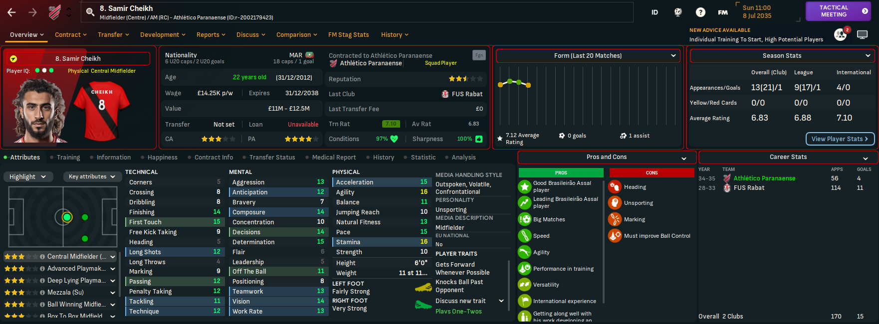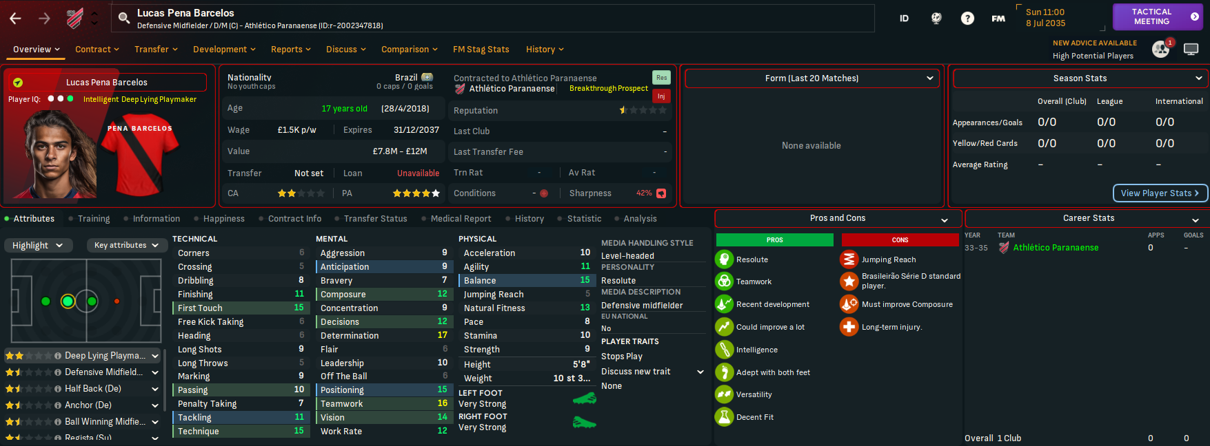 The best player at Paranaense is rapid winger Reinaldo Strada, who’s the only player to have 4-star ability but has oddly only played six games this season. Other key players will be centre back Carlos Bruno, striker Tom and midfielders Ronaldo Henrique, Danilo (the former Forest player) and Fábio. There’s potential in 17-year-old midfielder Lucas Pena Barcelos, winger Carlos Eduardo, right back Yago and Moroccan striker Khalid Ennafati and midfielder Samir Cheikh. The youth teams also had nine players with 4.5-star potential or better led by centre-back Evaldo, midfielder Anderson and winger Paulo Roberto Aal. Rasamu arrived at Paranaense two days before the transfer window opened and wasted no time in selling 10 players for £2.5m then signing Paraguayan striker Alejandro Villamayor for £950k.