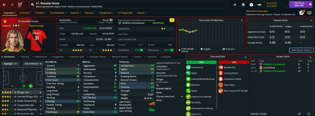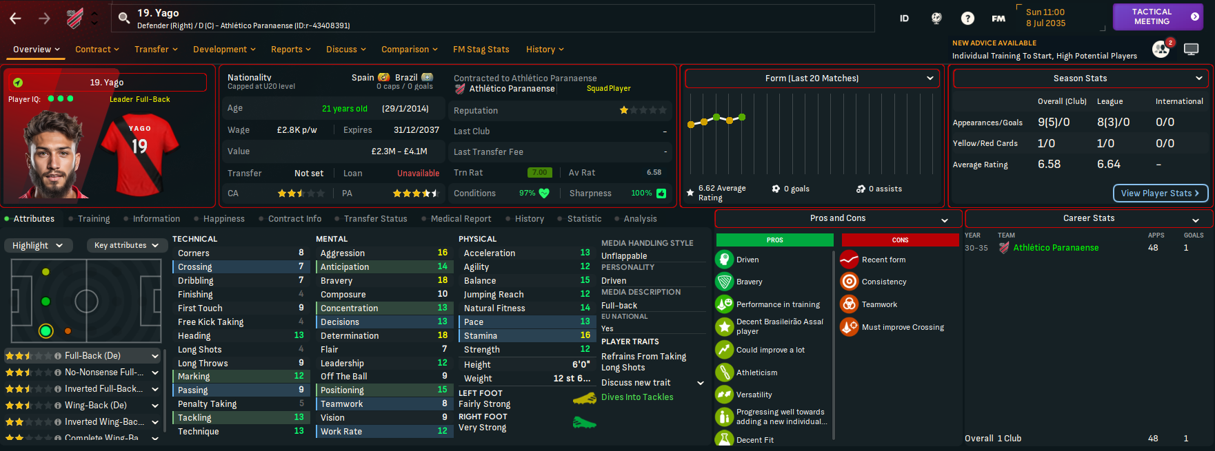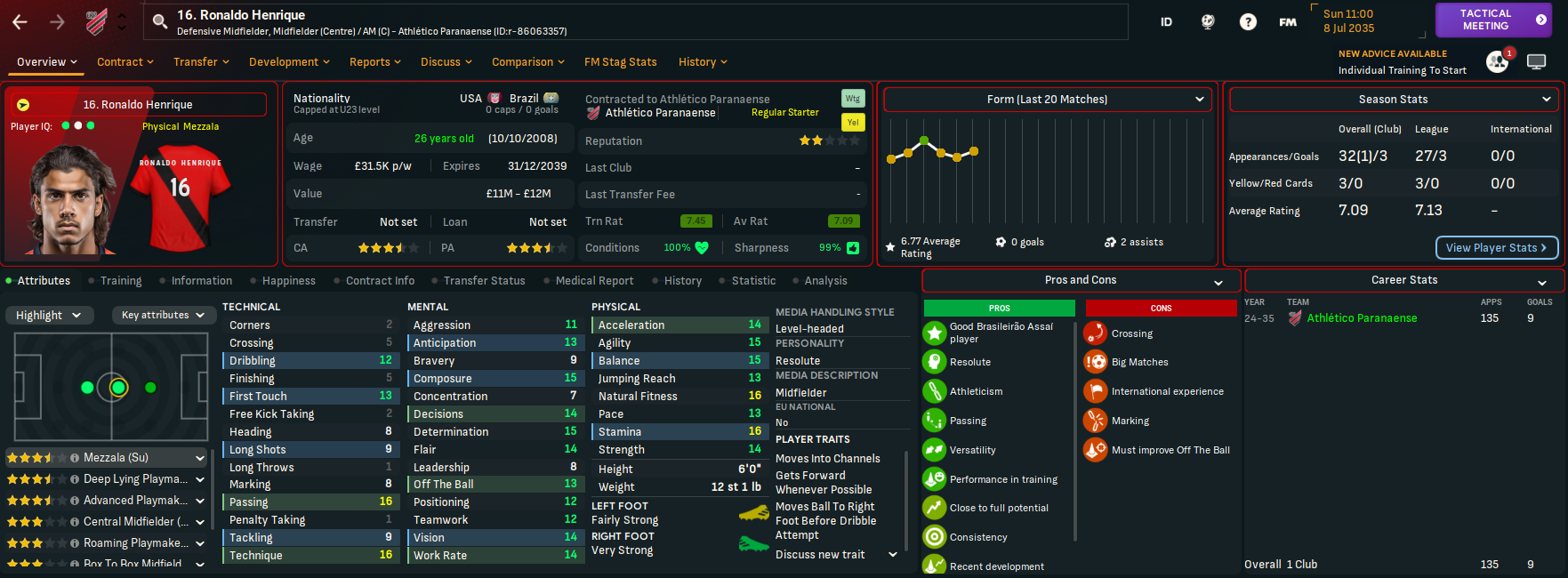 Realistically, when you have the chance to manage in Brazil, the spiritual home of football, you can’t really say no. So on 2 July 2035, Rasamu was heading to Brazil.
