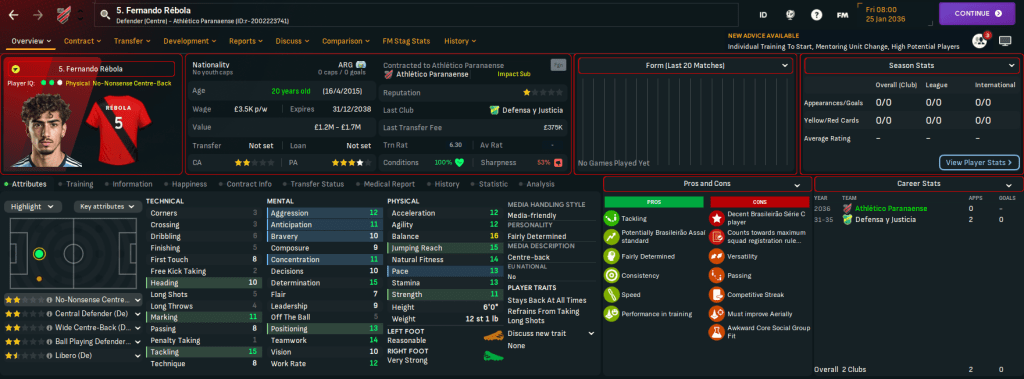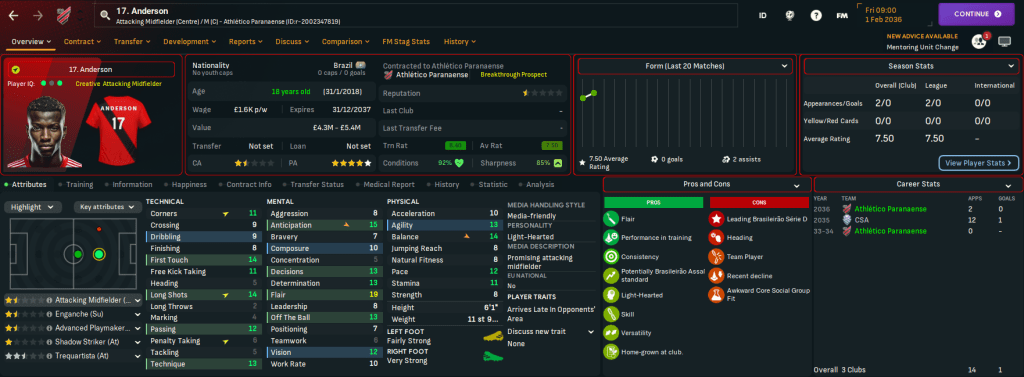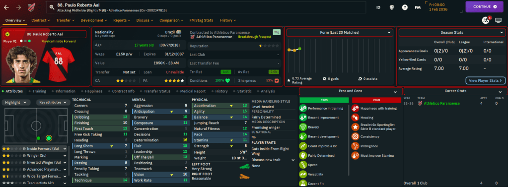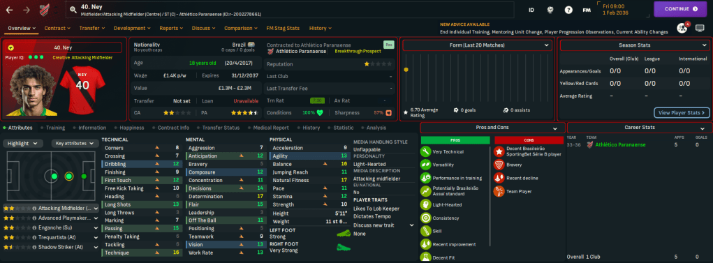 He also promoted promising youngsters like striker Pipoca, midfielder Anderson, attacking midfielder / striker Ney, winger Paulo Roberto Aal and brilliantly named goalkeeper Garrincha. That took the teenager count in the first-team squad to eight and brought the average age down to 21.46. And two of their young talents made the NxGn 2036 with midfielder Lucas Pena Barcelos 4th and Aguilar 29th.
