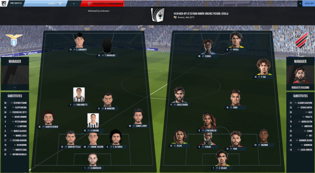 Rasamu got an opportunity to see just how good his young players were as Paranaense’s Copa Sudamericana success took them into the European/South American Club Challenge against Europa League winners Lazio. That meant a trip over to Spain and Sevilla’s Estadio Ramón Sánchez-Pizjuan.