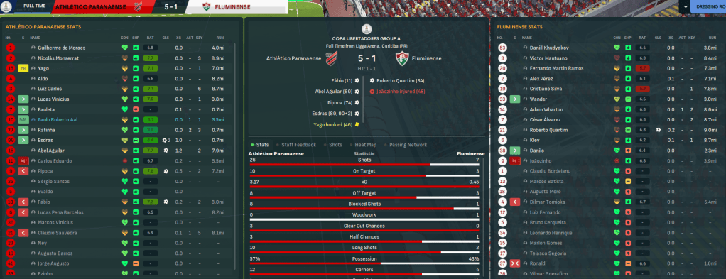That left Paranaense sitting in 3rd just three points behind Palmeiras with two games in hand. They’d performed really well so far but Rasamu was concerned by a mass drop-off in form that’s seen only one player average over a 7.00 in the last five games.