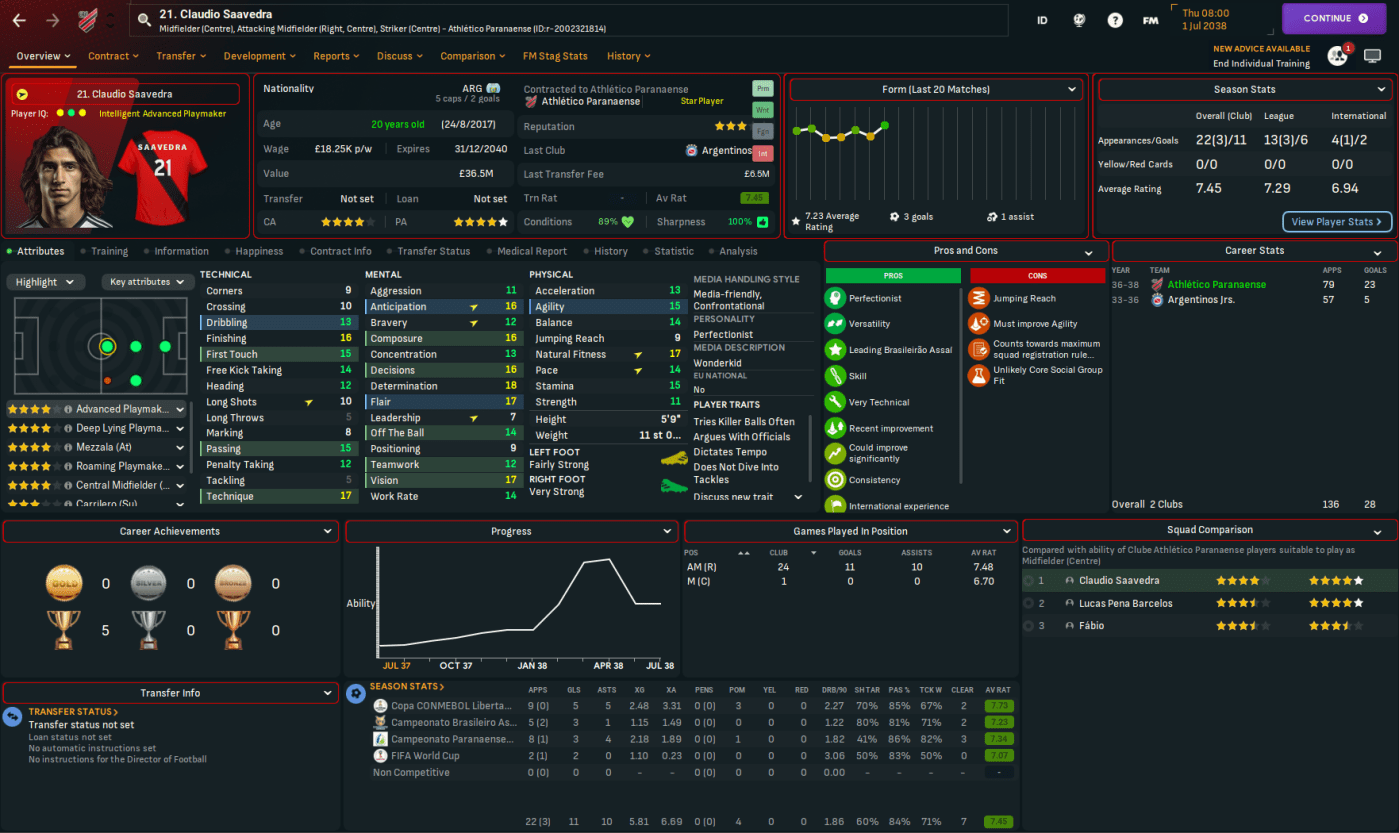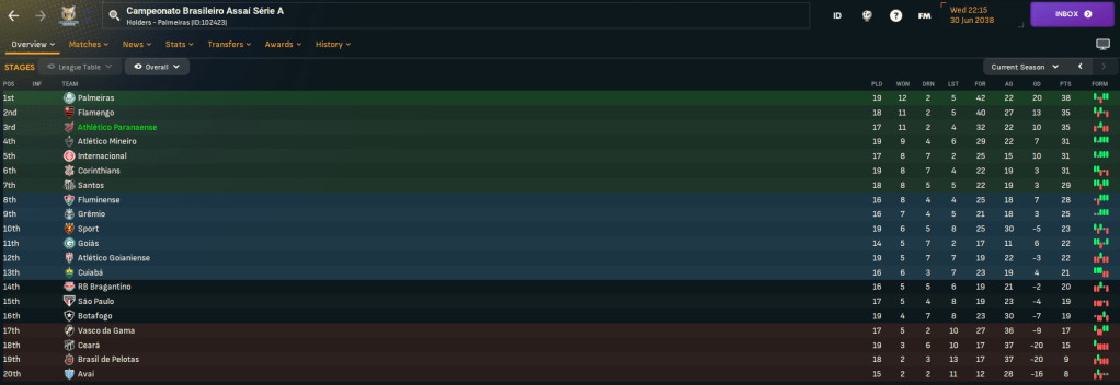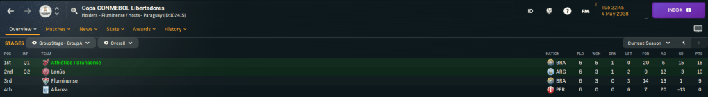 Athlético Paranaense came into 2038 armed with an exciting arsenal of young talents like strikers Pipoca and Esdras, winger Paulo Roberto Aal and Brazil international Lucas Pena Barcelos. Manager Robaato Rasamu was excited about the club’s future, while questioning how quickly these youngsters could reach the level capable of leading the club to continental glory.