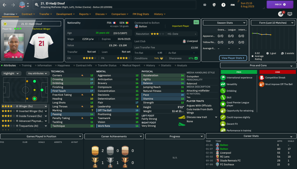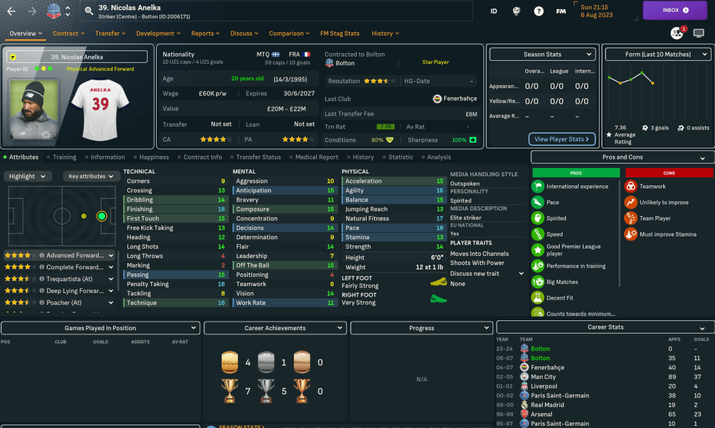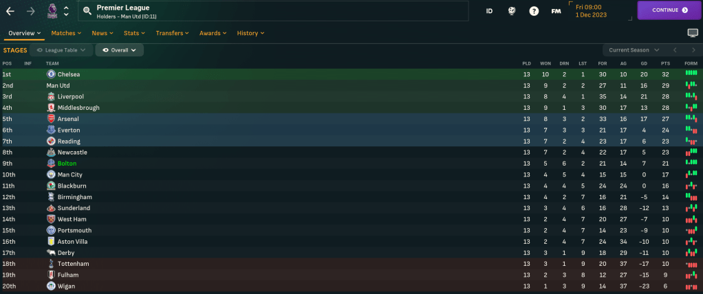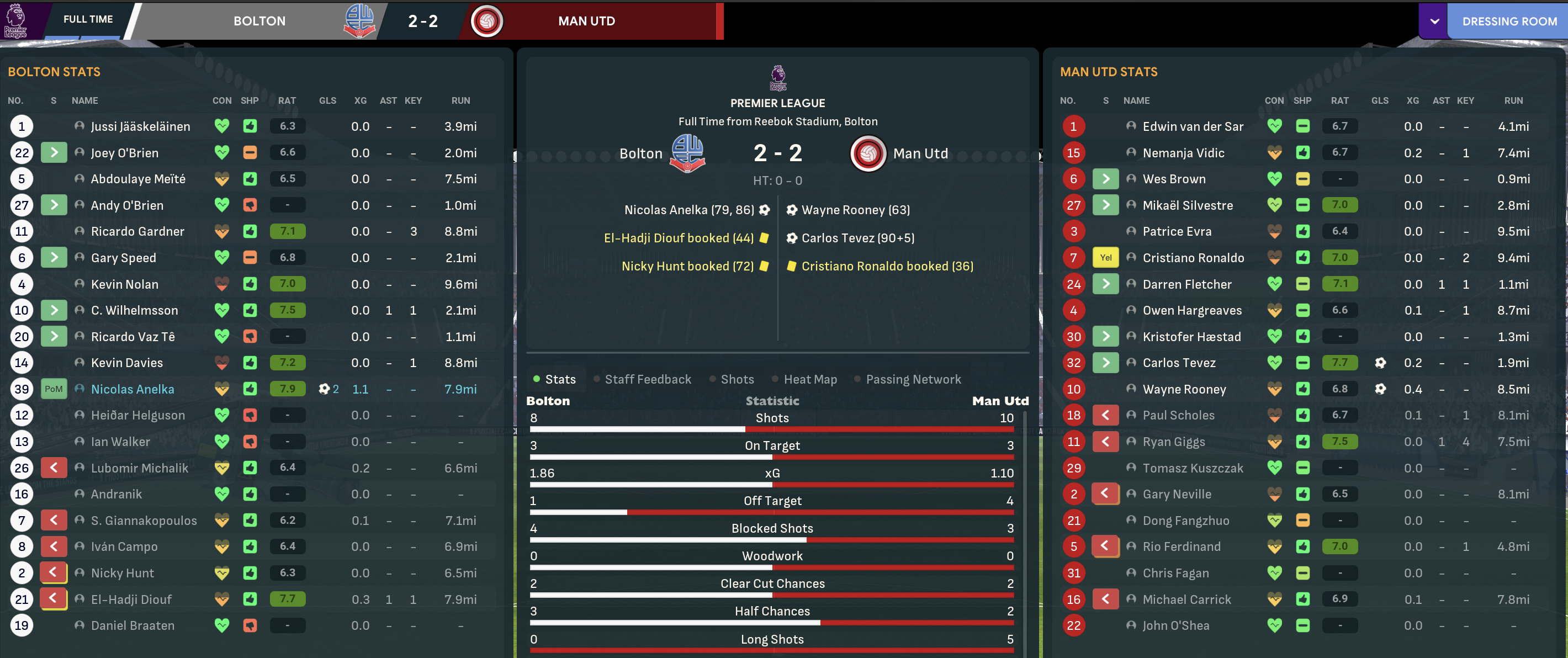 Mahtal was very pleased with his first few months picking up the pieces from Big Sam’s departure. And things were definitely faring better than Bolton’s real-life performance in 2007/08, in which they lost five of their opening six league games and only won one of their first 14 games up to the end of November (which ended with Anelka scoring the only goal at home to Man UFC, in a game that I went to with my Dad).