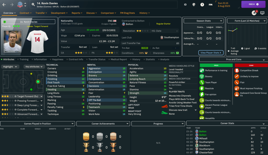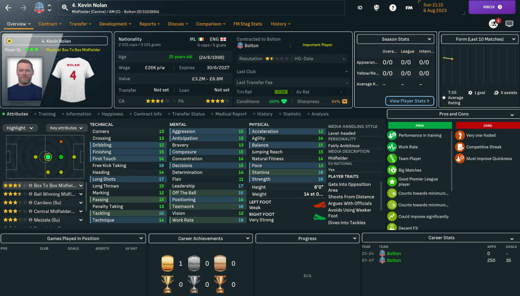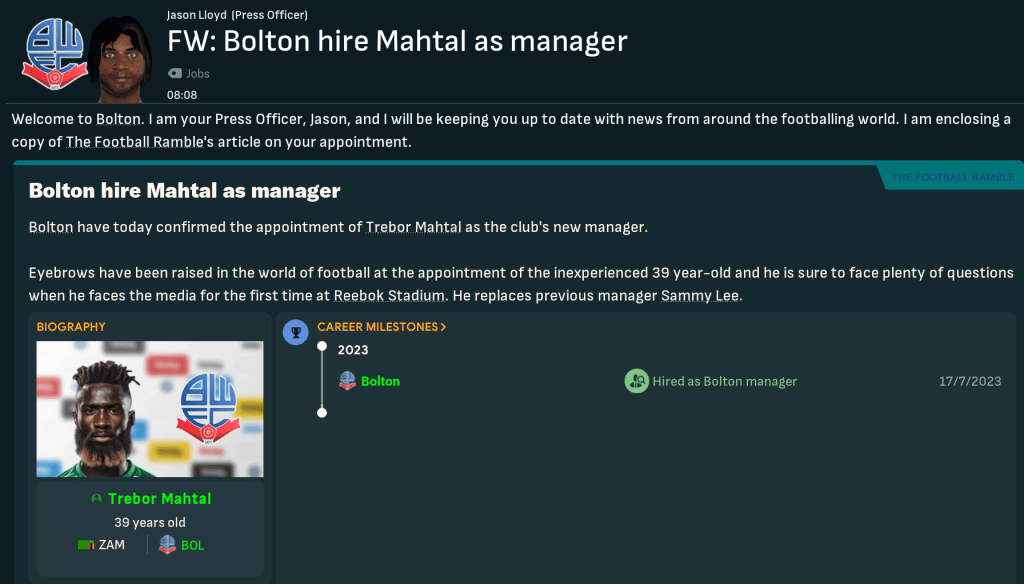 Three months on from Big Sam Allardyce’s shock departure as manager of Bolton Wanderers, Garth Crooks’ words are ringing true as there’s a new face in the dugout at the Reebok Stadium. The timely release of The Mad Scientist’s 2007/08 database for Football Manager 2024 has seen any talk of assistant manager Sammy Lee taking control laughed off as the fish-and-chip paper it always should have been. Instead, Phil Gartside has turned to former Zambian international Trebor Mahtal to pick up where Big Sam left off.