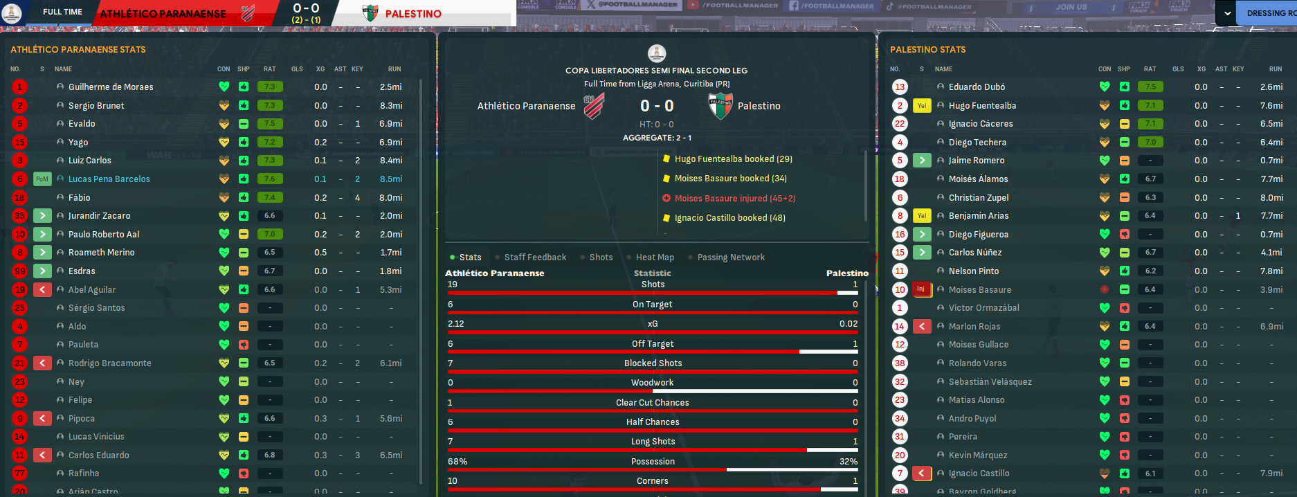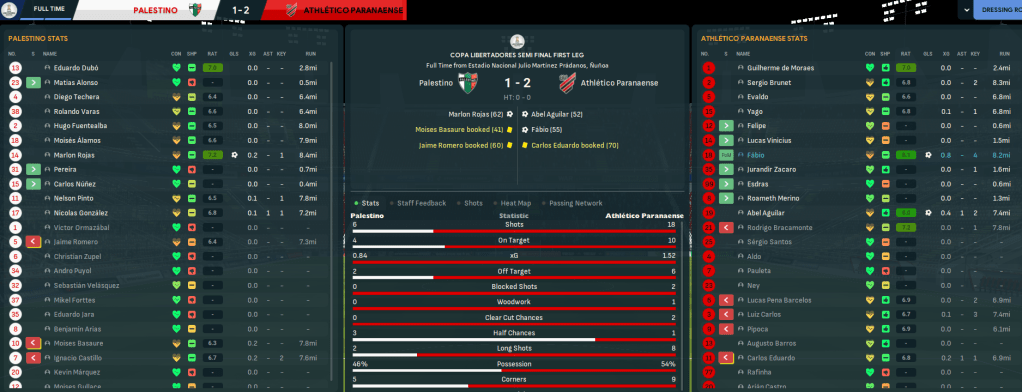 Paranaense faced Palestino, who shocked Boca 4-2 in the quarters, while Flamengo took on Corinthians. The away leg was first again and Palestino started well, getting several shots in without causing too great a threat. Paranaense grew into the game and took the lead through a smart Aguilar finish. The striker then teed up Fábio to hit a sweet volley from 20 yards and it should have been comfortable, but a dreadful clearance by goalkeeper Guilherme de Moraes gifted Palestino a lifeline. The second leg saw Paranaense boss the match momentum but create nothing of note and restrict Palestino to one shot. So Paranaense cruised to Rasamu’s first Copa Libertadores Final in unconvincing fashion.