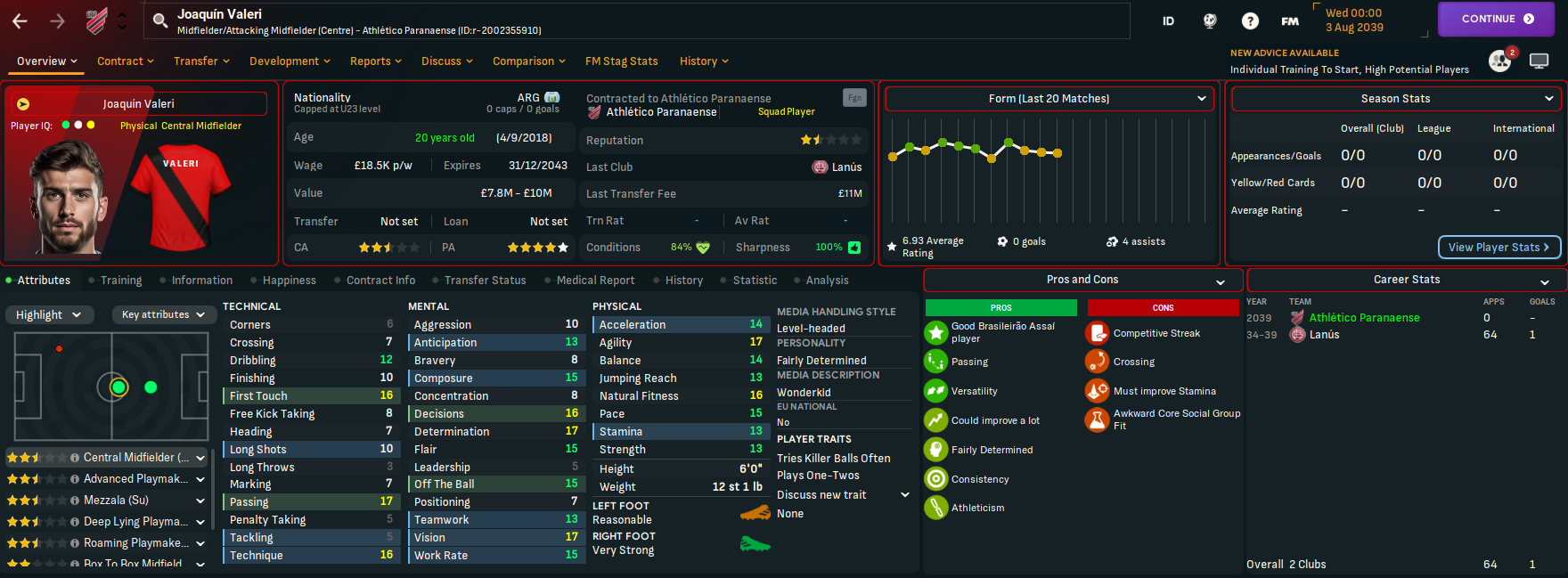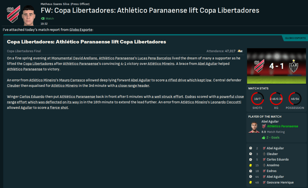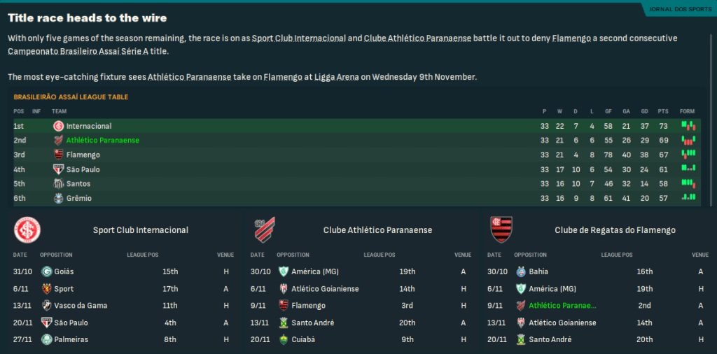 Athlético Paranaense had well and truly put the pain of their Copa Libertadores defeat behind them, only losing four times in 42 matches seven months into 2039. But the hard work began now as they looked to go again in the Libertadores knockouts and aim for the club’s second Série A title and first in 38 years.