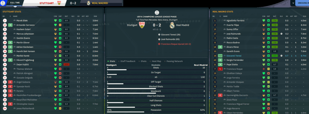 Rasamu’s biggest test yet came as Real Madrid, who have five players earning £400k a week or more and 12 on more than £250k, visited Mercedes-Benz Arena. Madrid bossed the game and opened the scoring after 26 minutes. Neither side created a great deal and Madrid killed it off late on as Rasamu pushed for an equaliser. Another big test took them to Old Trafford to face Man UFC, who had Rasamu’s former Pachuca midfielder Jason Gattini in midfield and former Paranaense stars Nicolás Monserrat and Abel Aguilar. Stuttgart kept UFC out in the first half but Aguilar scored eight minutes after the break and the visitors couldn’t mount a response. But Rasamu was relatively pleased that they didn’t disgrace themselves against two of the best sides in the world.