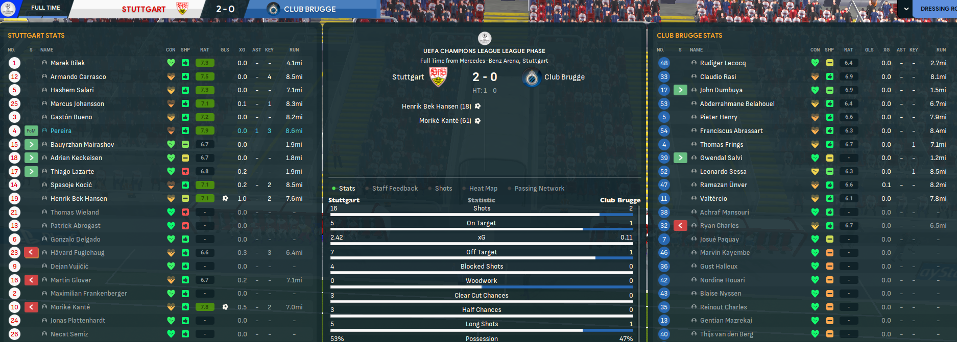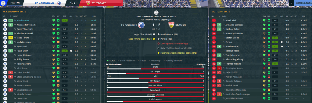 Next up was a trip to Denmark and FC Kobenhavn, who’ve somehow kept hold of Roony Bardghji, now 36, throughout his entire career. Vujicic won and missed a penalty on 28 minutes but Glover headed home his first goal for the club from the resulting corner. He should have doubled the lead after an hour but his midfield partner Pereira made sure of the victory with a late 25-yard effort. They backed that up by easing past Club Brugge 2-0 with an early Hansen goal and midfielder Moriké Kanté’s curled strike.