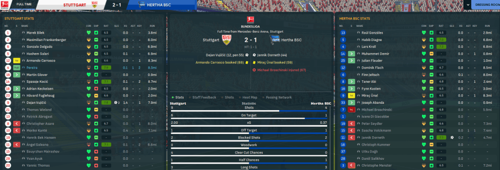 Stuttgart made a solid start to the season, winning seven of their first 11 games. However, they were rocked by star player Ángel Galeano suffering damaged cruciate ligaments on international duty, which would rule him out for the rest of the season. Luckily, Vujicic was well and truly stepping up as the main main without the Paraguayan. The striker bagged back-to-back braces to inspired consecutive 3-0 wins over Bochum and Gladbach to lift his side into 2nd ahead of a huge clash with undefeated Bayern. The champions were likely to be well up for it given they got spanked 5-0 in Stuttgart last season but the hosts started well, restricting Bayern to no shots on target in the first half. They offered a little more after the break but Stuttgart again kept a clean sheet to gain a creditable 0-0.
