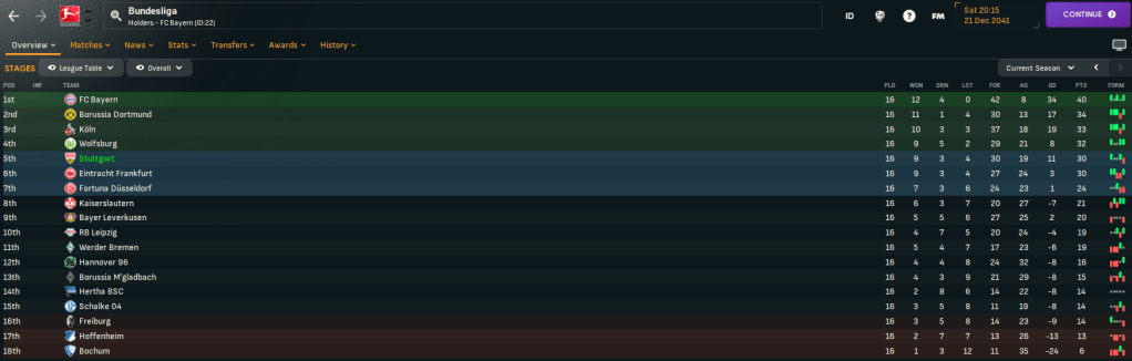 Carrasco got his first goal for the club in a 2-0 win over Koln before ending in 2041 in disappointing fashion with a 3-0 defeat at Dortmund. That left Stuttgart sitting 5th in what is again shaping up to be a really tight Bundesliga. Bayern look nailed-on for a 30th consecutive title with a six-point lead but behind them the next five teams are separated by just four points.