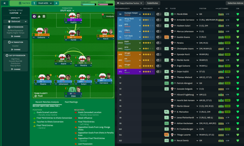 Rasamu decided to stick with the 4-2-3-1 approach that had worked well last season. But he was looking to upgrade his centre back roles to a libero and ball player given the step up in quality he felt he now had.