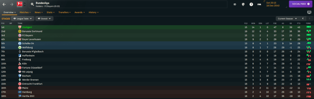 That gave them confidence to continue on a rich vein of form, including a Goodwin brace inspiring a 4-1 win at Frankfurt and late goals by Groothuesheidkamp and Mazurenko edging a 3-1 success at Koln. That took them into a lengthy winter break with a healthy seven-point lead over Dortmund and eight points clear of Bayern, after only dropping points once in 15 games. Galeano led the league with eight assists and a 7.61 average rating and Marek Bílek led the way with eight clean sheets.