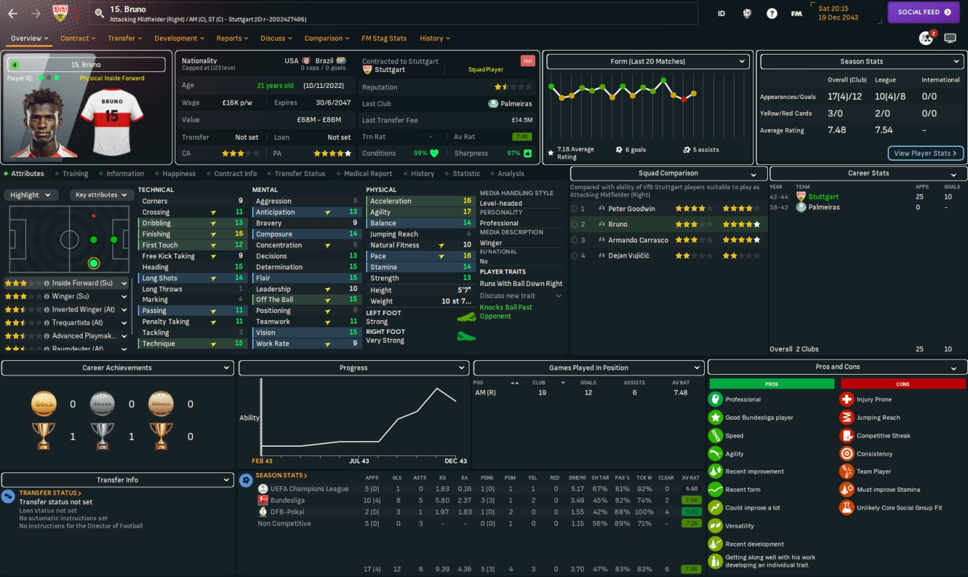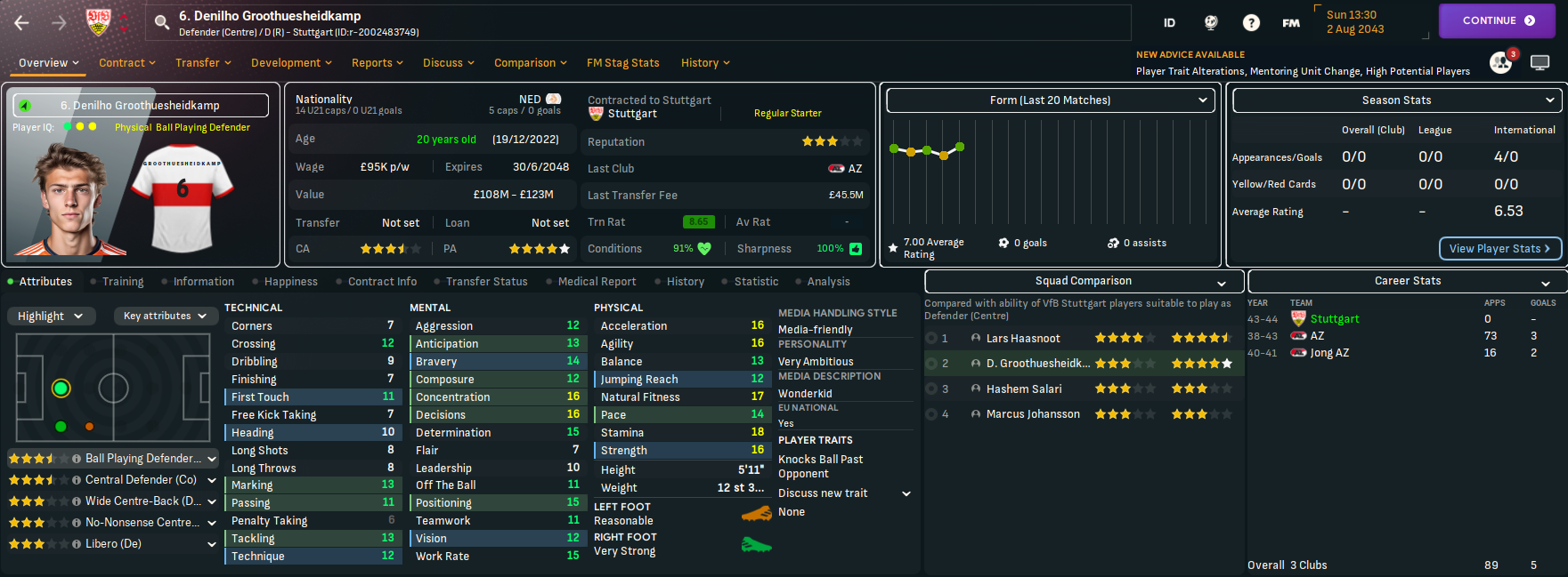 A key area Rasamu wanted to strengthen was up front and he got his main target Peter Goodwin for £38.5m from Southampton. Joining him was another exciting defender Denilho Grootheusheidkamp for up to £45.5m from AZ, 18-year-old holding midfielder Gabriel Rancati for £26m from SPAL and backup striker Guido Araujo for £2.5m from Aldovisi.