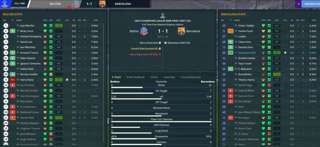Bolton had their best Champions League league phase yet, winning six out of eight to progress in 4th. Celtic couldn’t handle the attacking approach as Bolton won 4-1 in Scotland and 4-2 at the Reebok. A tougher tie followed against Real Madrid, but even they couldn’t handle Bolton’s attack in a superb 4-1 win at the Reebok, before they snuck through with a 3-1 defeat in Madrid. Their reward was a semi final against holders Barcelona and they started well as Bale’s cross found Kane, only for the striker to chop down Ronaldinho and allow Barca back into it. Mahtal had to go more defensive at Camp Nou and his side generally did well, only conceding to a lucky Yaya Touré goal and offering nothing in return. So the Champions League dream ended once again.