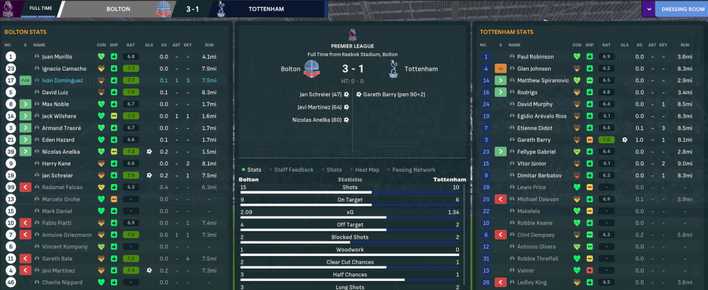Bolton made a good start as Gareth Bale’s hat trick earned their first Community Shield win against Derby and two assists for Kane and Domínguez defeated Sheff U 2-1 in the league opener. They started the season in scintillating form, going 13 games unbeaten before a 2-0 loss at Liverpool, then Kane and Schreier strikes led a 5-1 hammering of West Ham. The big Czech was in inspired form, coming in for the injured Anelka and bagging four braces through December to send his side top of the league.