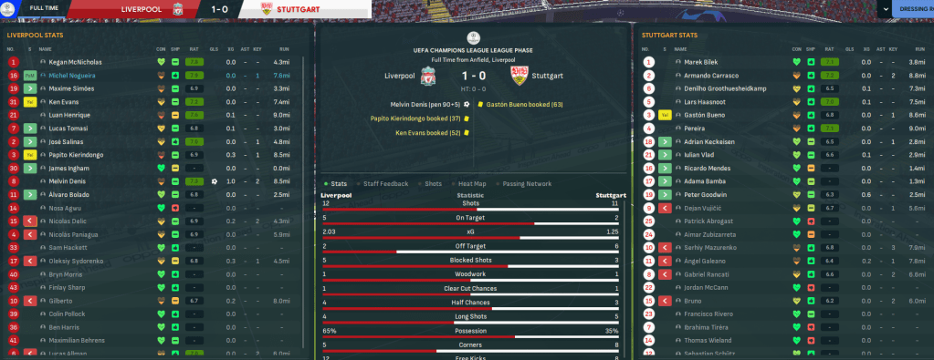 Stuttgart got a relatively kind set of games with the biggest test being Liverpool away. They began with a pretty comfortable 3-0 win over Rennes, including Rivero scoring his first for the club. Rasamu’s 200th match at Stuttgart took them for his first ever trip to Anfield. Both teams had plenty of chances but it looked to be drifting to a 0-0 until the cheating referee awarded a disgrace of a penalty in the fourth minute of three added minutes to give Liverpool an unfair victory.