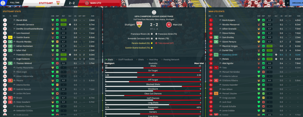 That miscarriage of justice gave Rasamu the fuel he needed to stick it to what he perceived as the “European elite.” They responded by thumping Olympiacos 5-0 led by Galeano’s brace and were equally dominant against Celtic but somehow only scored once through Mazurenko before a heavily rotated earned a respectable 0-0 at Villarreal. A big test of their credentials came in a visit from Man UFC, against whom Rivero gave them a great start. A clever free kick routine ended up with Carrasco, who turned and drilled home his first of the season to double the lead after an hour. But they quickly threw that advantage away to draw 2-2.