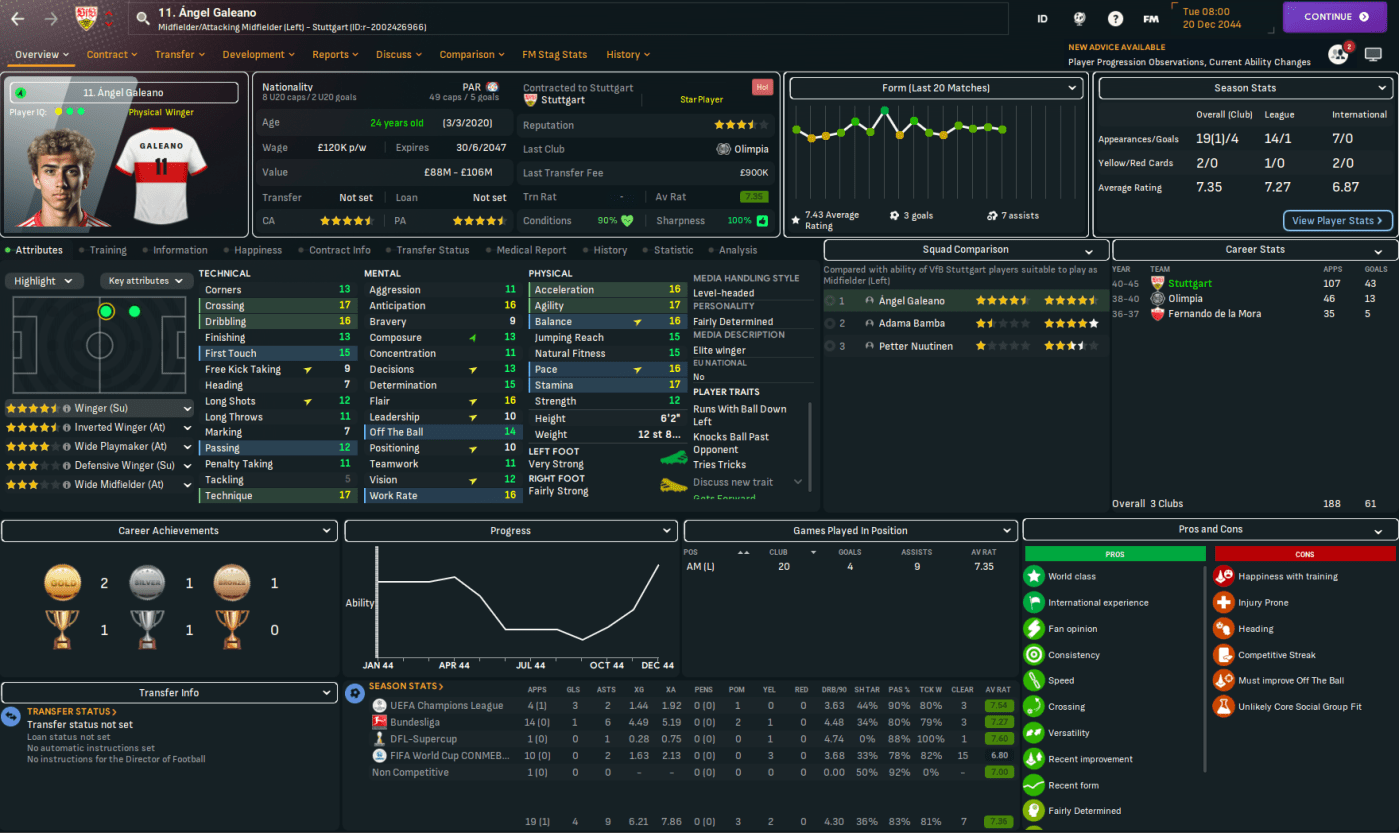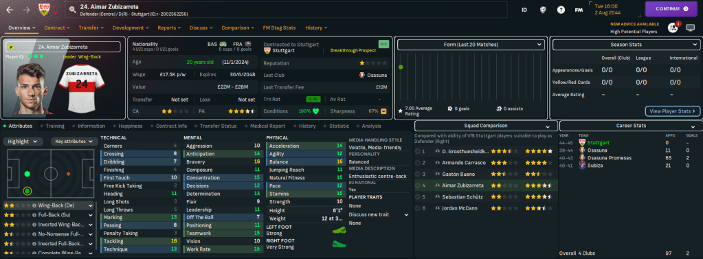 After a few days of celebration, Rasamu began planning to defend his Bundesliga defence and, more importantly, taking a shot at the Champions League. He moved on a few players like centre back Hashem Salari going to Inter for £30m and midfielder Havard Fuglehaug to Saudi for £20m. In their place came more potential in attacker Francisco Rivero for £7.75m from Deportivo and versatile defender Aimar Zubizarreta for £12m from Osasuna.
