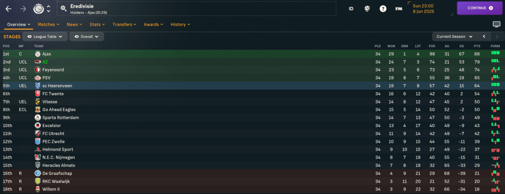 AZ Alkmaar made a promising start to life under Robinho Lazaró, who’d been impressed with his side’s efforts to finish 4th in Eredivisie in 2023/24. However, these early seasons don’t really matter too much in our bid to become national and European champions with a team of academy products.