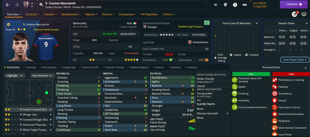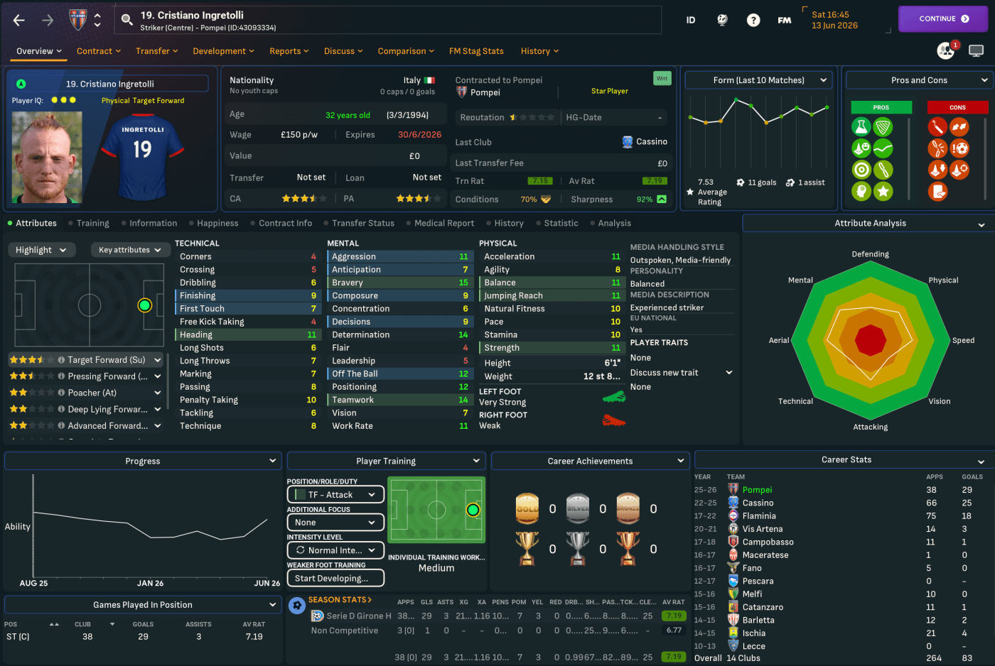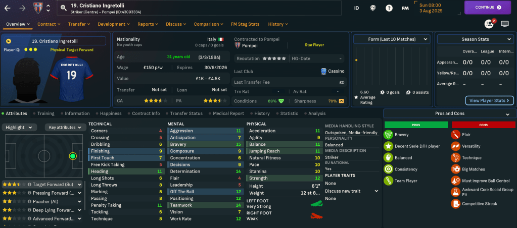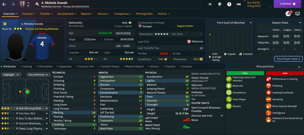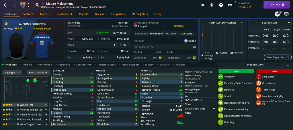They again had to rely on bringing in free agents in the summer, but this time signed some players ahead of tier 5 teams and even some that Sulpicius was excited about. The pick of them was former Napoli winger Matteo Malasomma along with midfielders Alessio Lettera and Michele Grande, target forward Cristiano Ingretolli and promising striker Cosimo Nacciarriti.