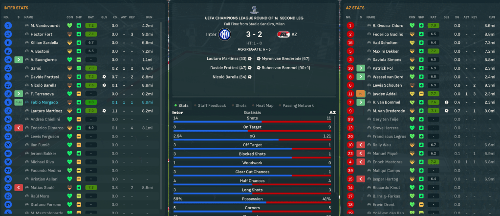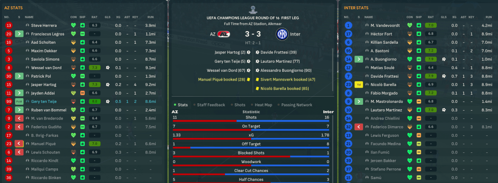However, they finished 12th to set up a playoff against Valencia, in which Wau and van Brederode inspired a 3-1 away win before a 1-1 back at AFAS Stadion. Next was a tough tie with Inter, which AZ started superbly as ten Teije created the opener for Jasper Hartog then scored himself inside five minutes. Inter came back into it but van Dord scored a superb free kick to restore the two lead. However, Inter had far too much for them and earned a draw. That set the scene for the second leg as Inter raced into a 3-0 lead before AZ showed some fight. But the Champions League dream ended at the last 16.
