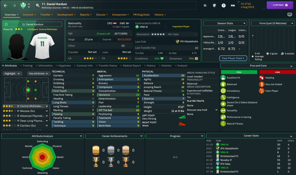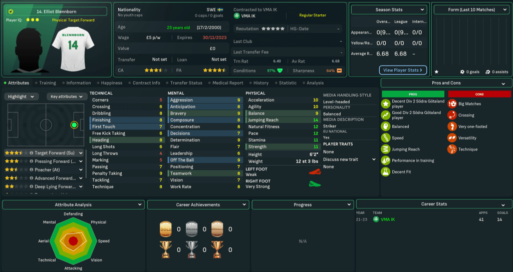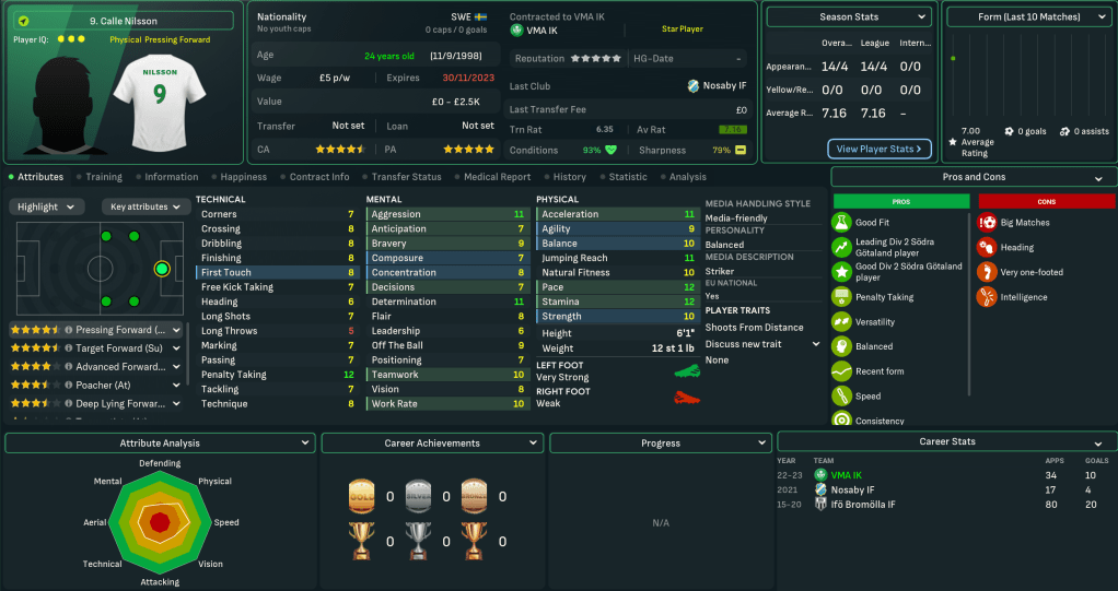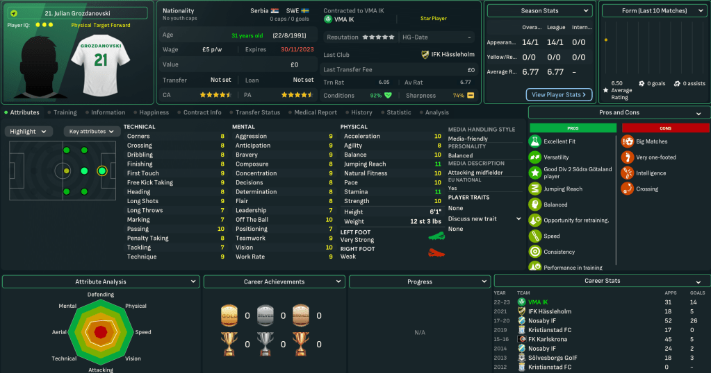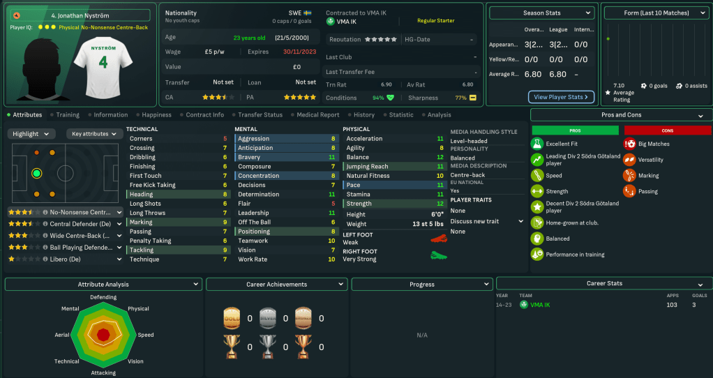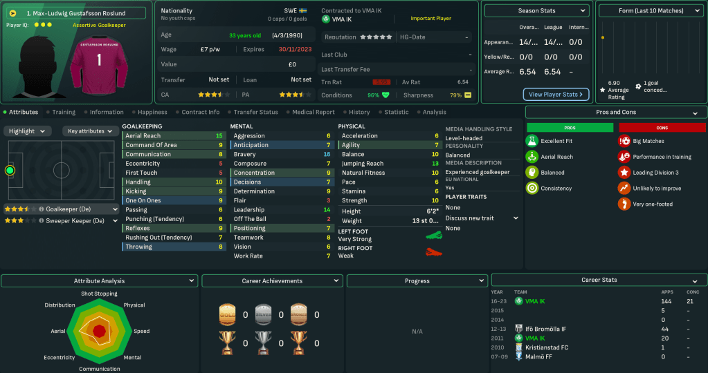 Therefore, VMA went into the strange Division 2 / Division 3 Playoff system. However… Mahtal wasn’t there to try and secure their survival! That was because his efforts at VMA caught the eye as third-tier Turkish side Ískenderunspor offered an interview then a job worth £250 per week, compared to his current £15. They also had a £7k wage budget and £30k transfer budget compared to £152 and £0. So that was obviously a no-brainer even for a manager with some semblance of loyalty, which Mahtal did not have. The Turkish side agreed to wait until the end of the Swedish season, which was the day after they played Balkan, and fund his National B license. So we’ll be off to Turkey in Part 2!