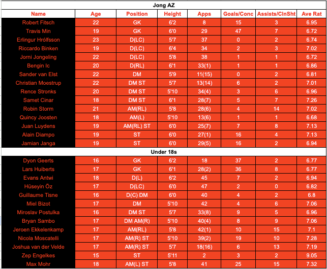 Jong AZ did well again to finish 6th in Keuken Kampioen Divisie, while the under 18s finished 2nd in their league led by the attacking trio of Jeroen Ekkelenkamp, Max Mohr and Nicola Moscatelli.