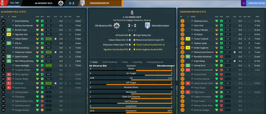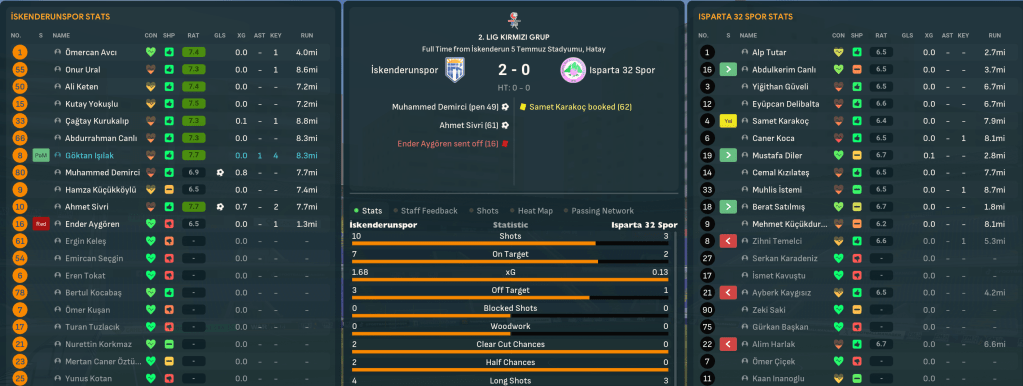 Mahtal was thrown straight into the thick of things as his first game at Ískenderunspor was on the same evening he was hired! And his first impression of Turkish football was… violence. Midfielder Ender Aygören came flying through the back of his opponent to get sent off for a shocking challenge after 16 minutes. But Mahtal stayed on the front foot and his team rewarded him as Demirci’s penalty and a Ahmet strike earned a crucial 2-0 win over Isparta 32 Spor.