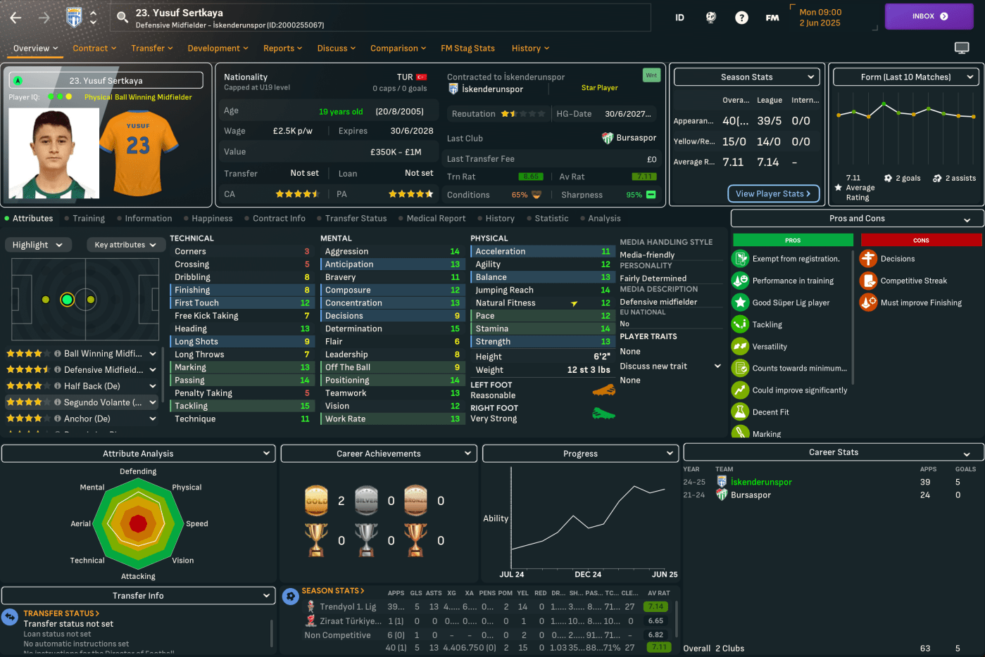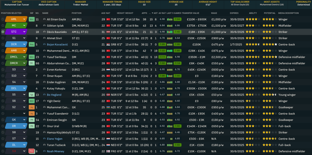 The signing of the summer was 18-year-old midfielder Yusuf Sertkaya, who immediately became the best player at the club, from Bursuspor. He was joined by winger Ali Sinan Gayla and defensive options Evren Korkmaz and Yusuf Esendemir. However, just as the season had started they lost wantaway star defender Ali Keten for a club record £300k to Bandirmaspor, and replaced him with arguably a better defender as Bojan Kovacevic arrived on loan from Cukaricki. Then in January, they snapped up experienced striker Davis Ikaunieks on a free transfer alongside a few loans to bolster the squad. Mahtal also opted to change up their approach, switching from the 4-4-2 diamond to a wider 4-3-3.