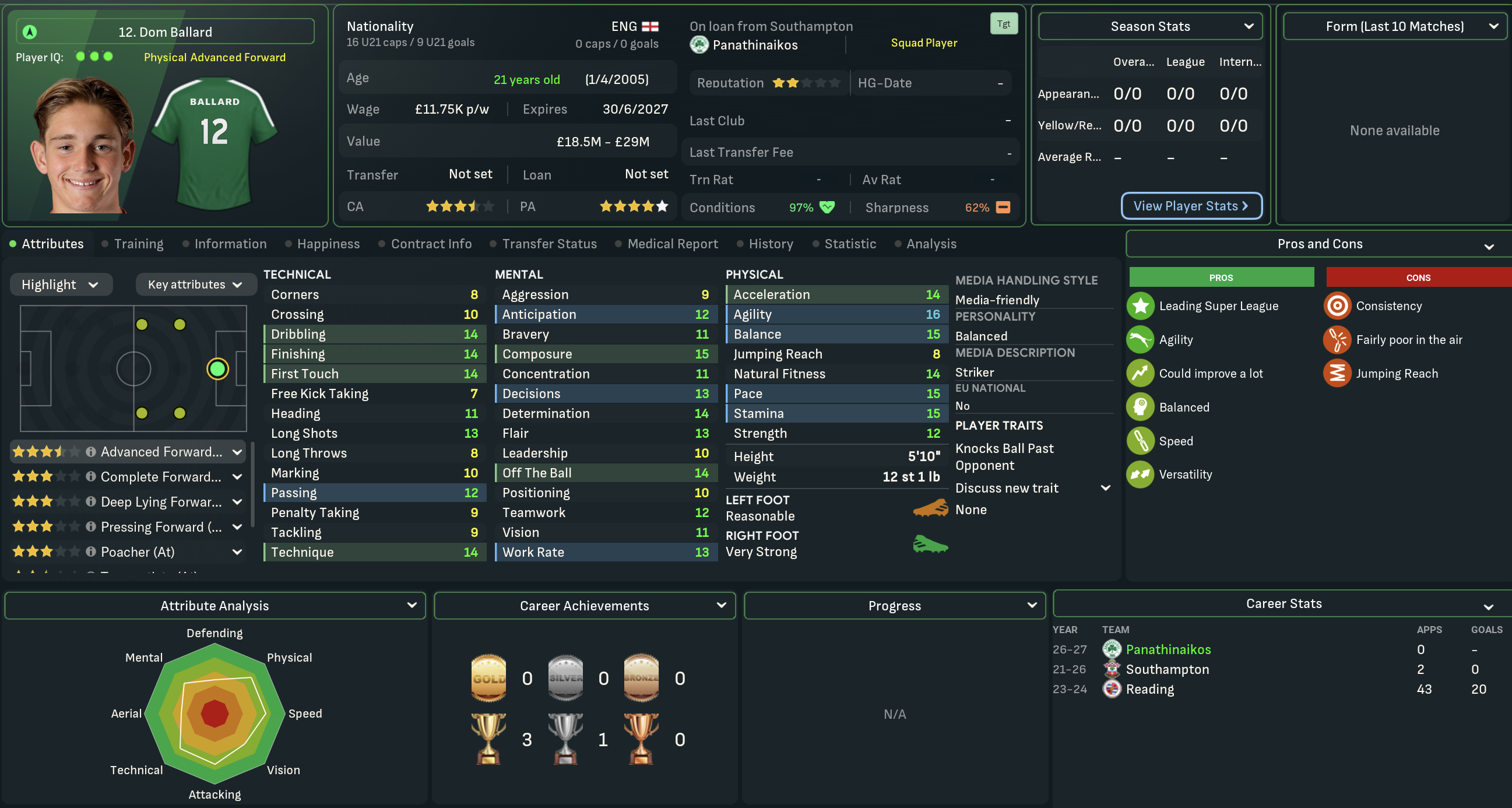Mahtal had led his side to dominance in Greece, winning the league at a canter and just about competing with some of Europe’s best. He may have a dilemma over whether to stuck with the club or seek pastures new, having realistically achieved all he can in Greece.